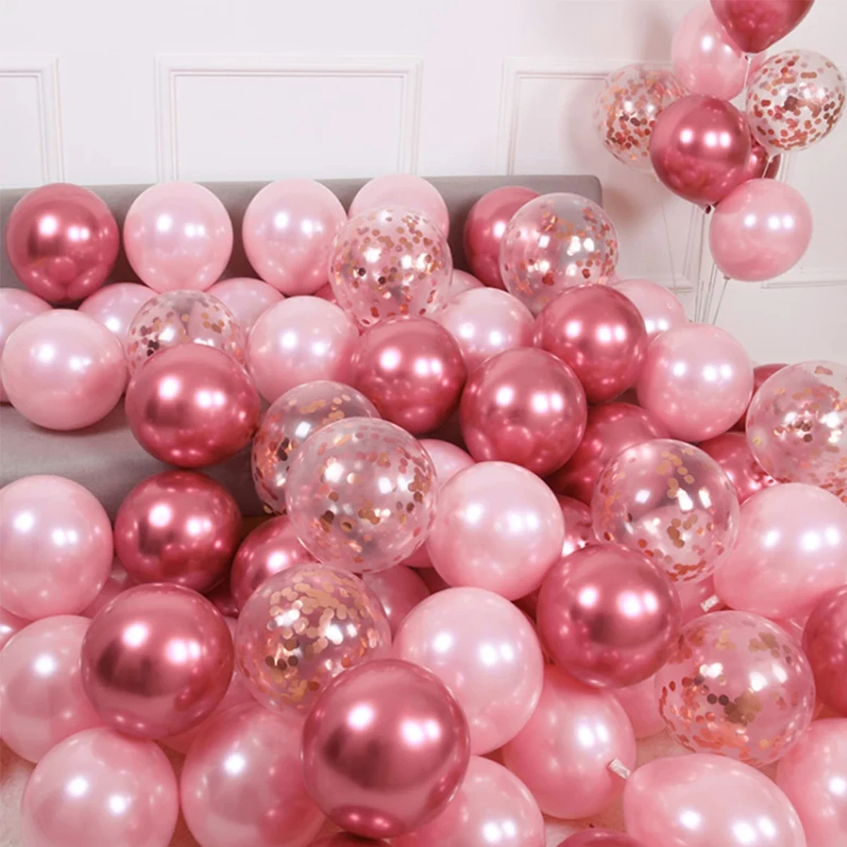 Comprar Globos de látex con confeti para decoración de fiestas, globos de helio transparentes con purpurina azul y rosa dorado, decoraciones para bodas y cumpleaños, 20/30 piezas