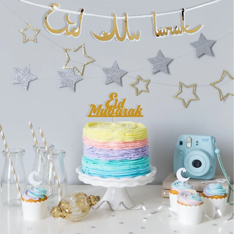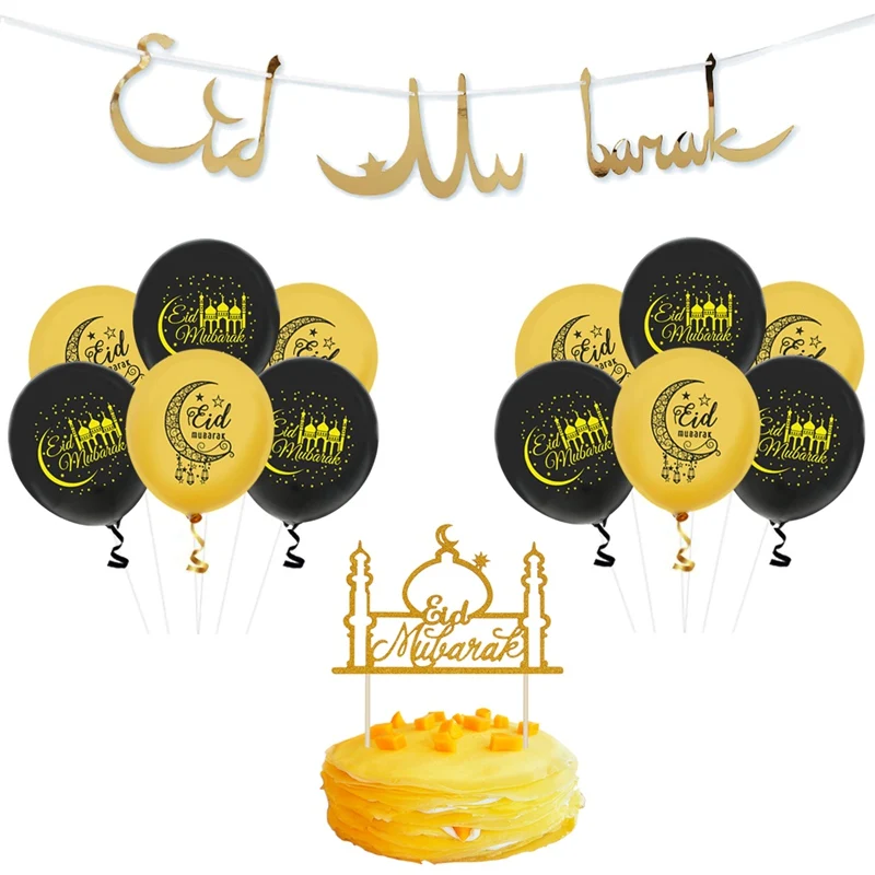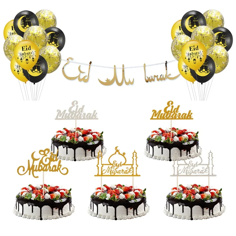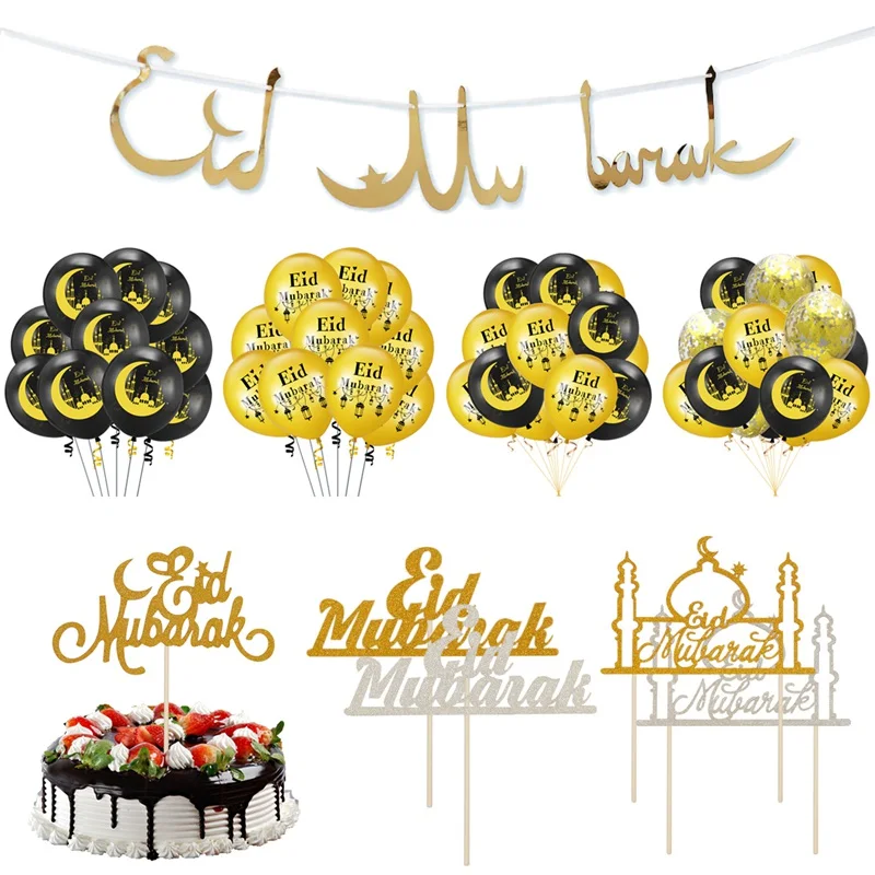 Globos de pancarta EID Mubarak, decoración de pasteles de Ramadán, Ramadán, Kareem, Mubarak, fiesta islámica musulmana, decoraciones DIY
