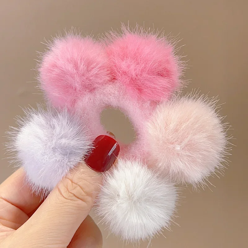 Gomas elásticas de felpa para el pelo, pompones de Color caramelo, lazos para el pelo, banda de goma, accesorios para el cabello para niñas y niños, novedad coreana