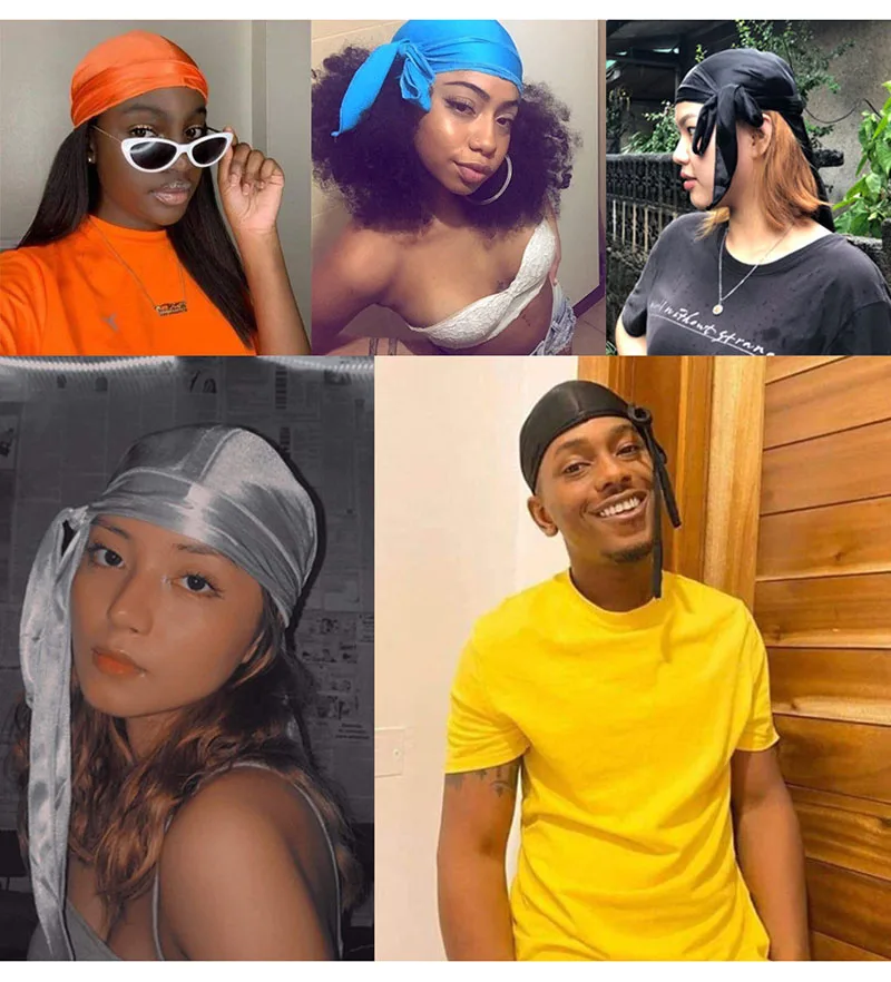 Comprar Gorro Baotou elástico, bandas para el pelo, simulación sedosa, Durag, cola larga, sombrero pirata, diadema, turbante, accesorios de cinta para niños