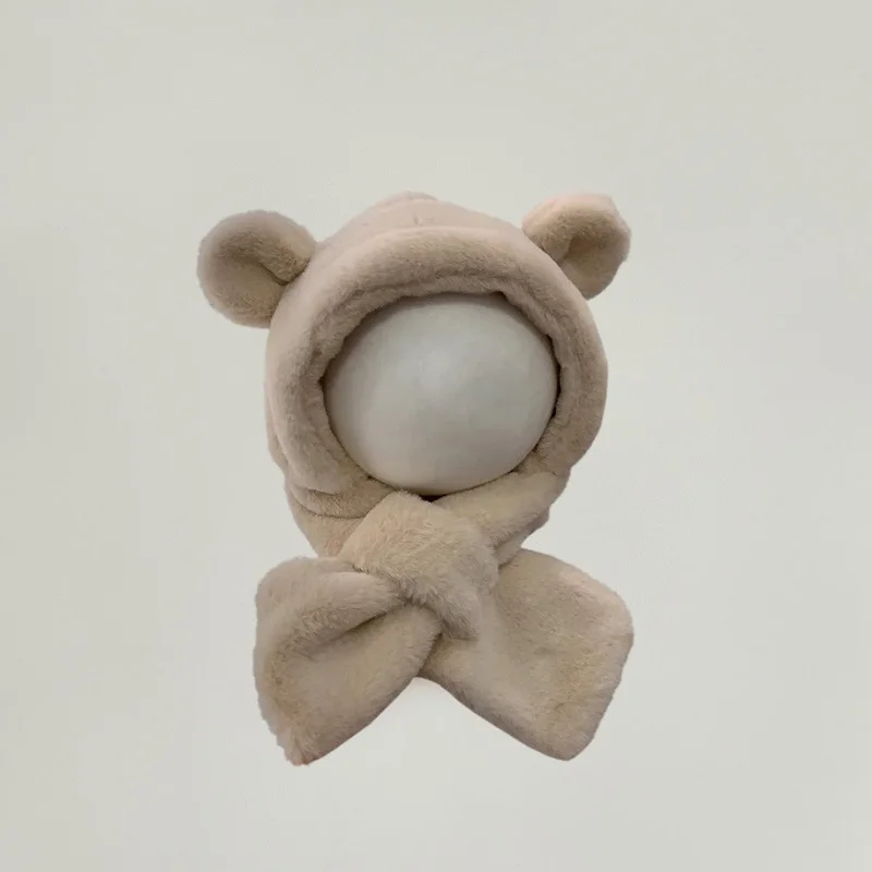 Gorro de bebé de 6 a 24 meses, gorro de oso pequeño de una pieza, bufanda, gorro de oreja grueso de invierno para niños y niñas, accesorios para niños pequeños
