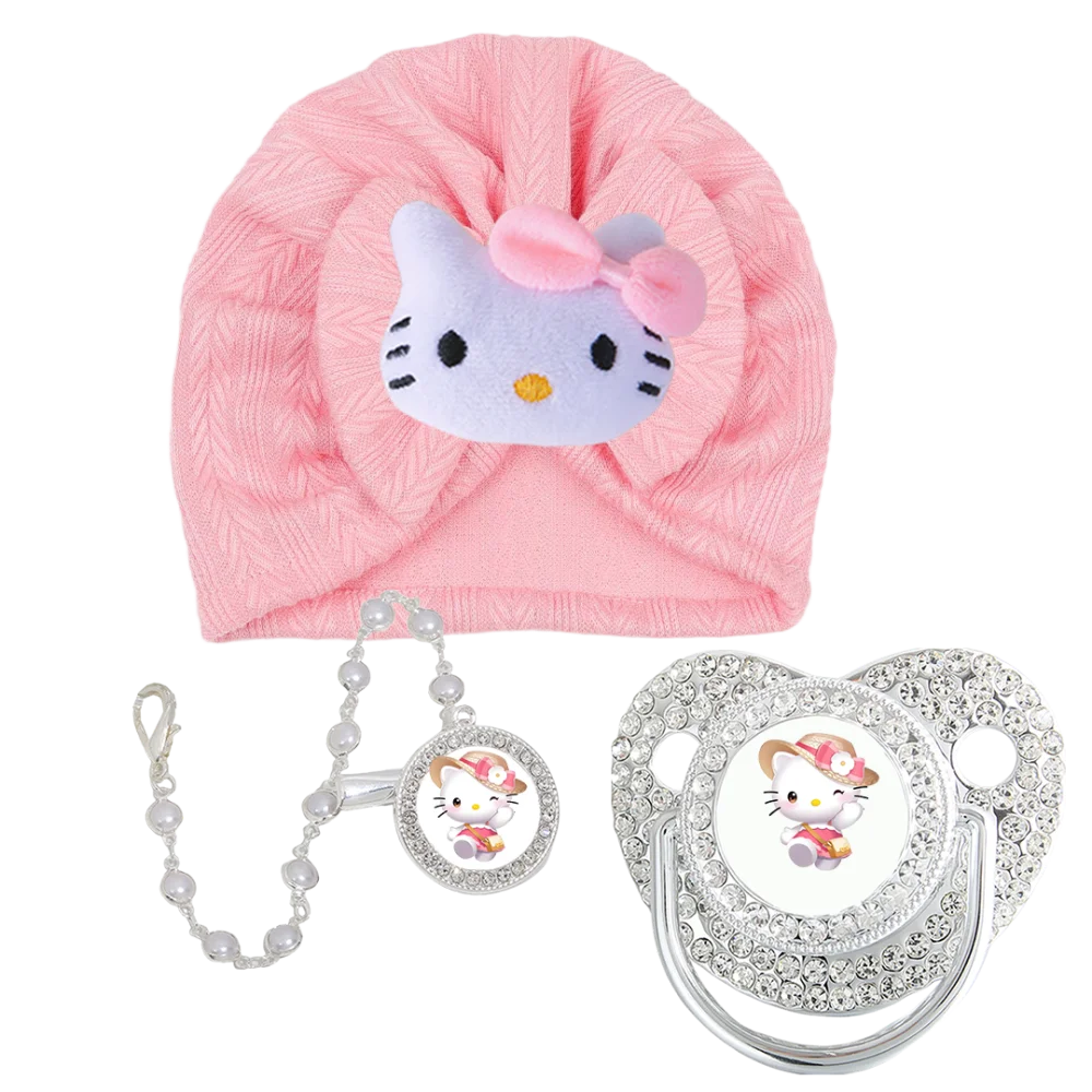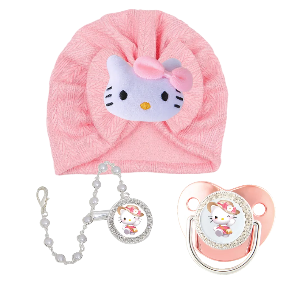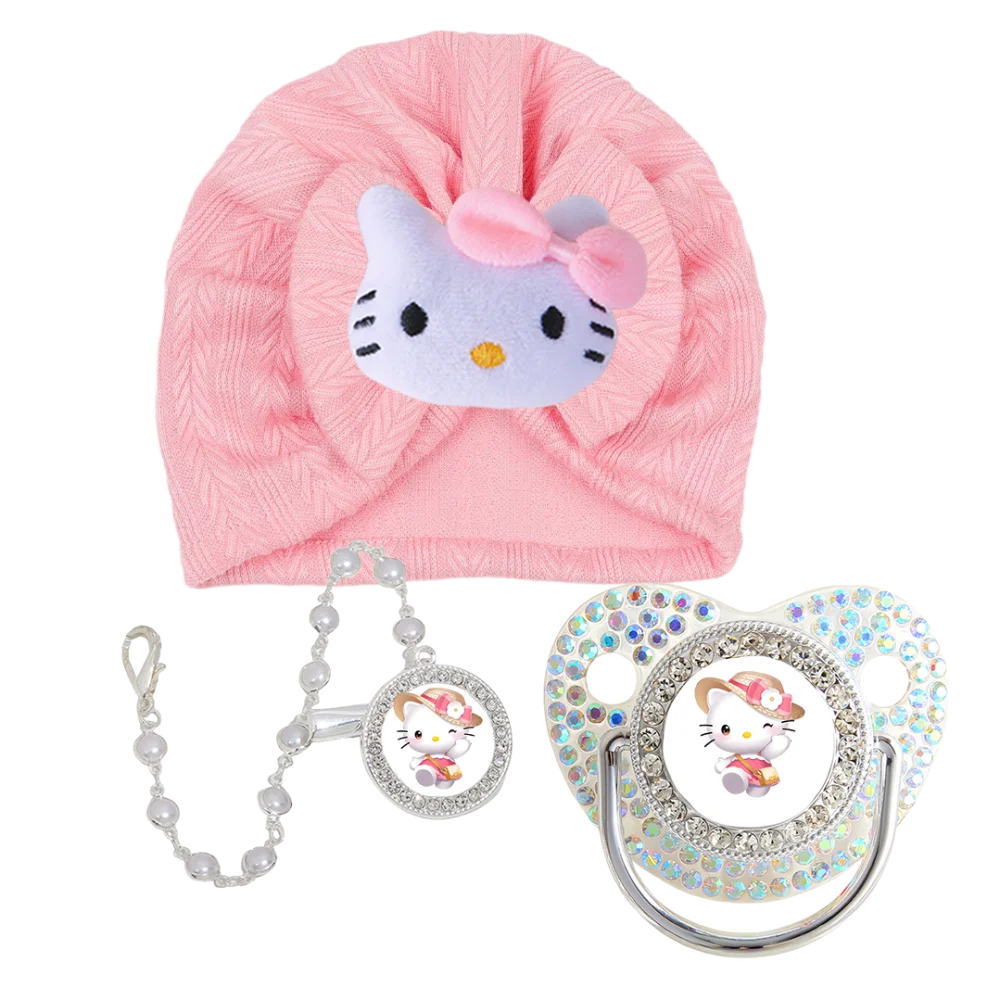 Lujoso gorro de felpa de dibujos animados para bebé y clip de cadena para chupete de bebé, alimentación para recién nacido, pezón de ortodoncia para bebé, bebé que mastica y juega la boca, conjunto de accesorios para el cabello del bebé