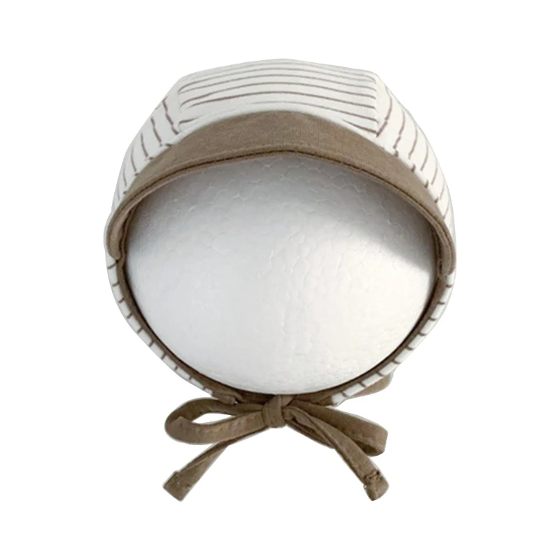 El paquete incluye1 gorra de protección para los oídos con cordones a rayas para bebé