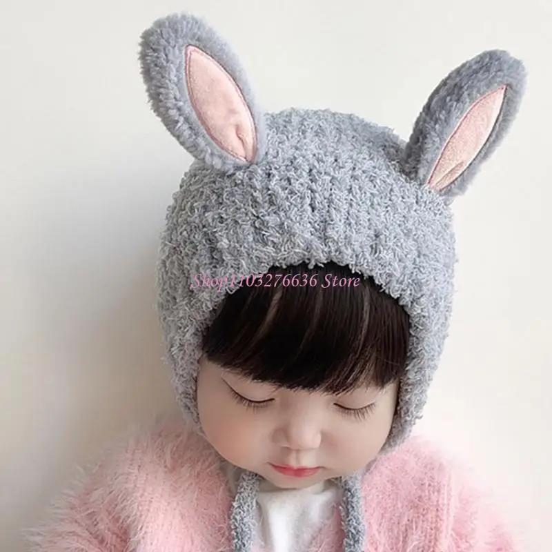 Gorro para bebé R6FD, gorro tejido con orejas conejo para otoño e invierno, gorro para niños, niñas y bebés, bonito - imagen 2