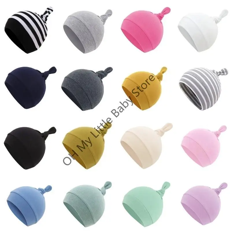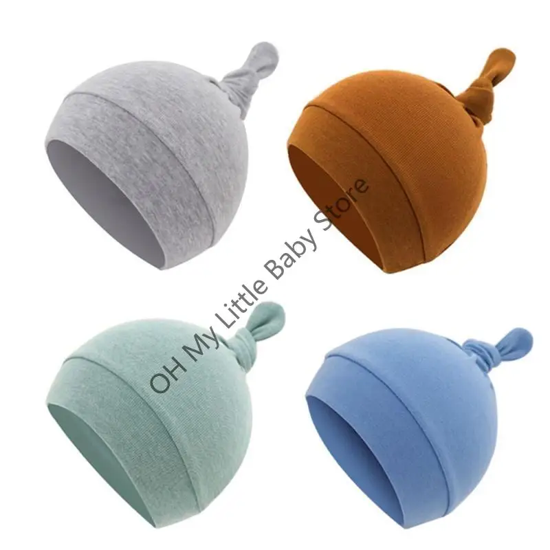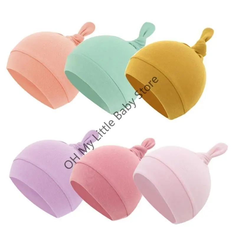 Gorro para bebé recién nacido de 0 a 6M, gorro anudado bonito de Color sólido, gorro infantil de primavera y otoño, gorros suaves de algodón para niños, regalo de ducha para niñas - imagen 1