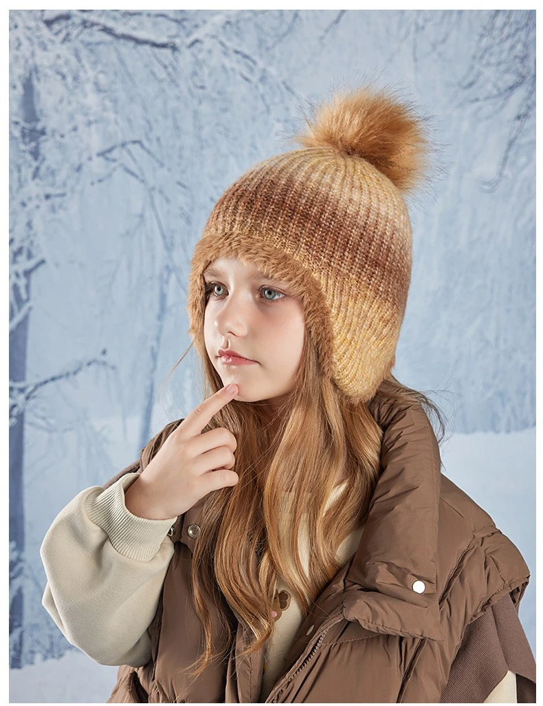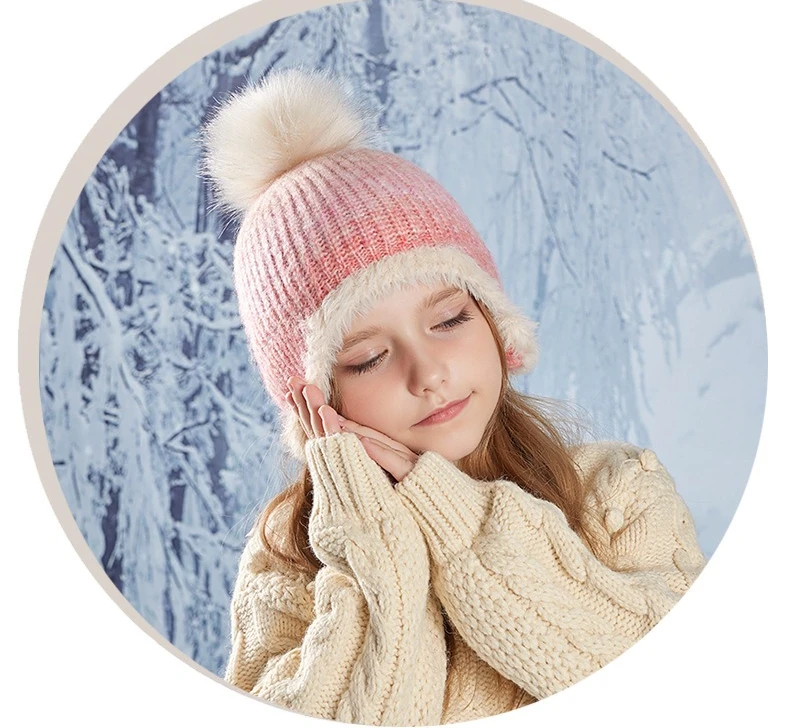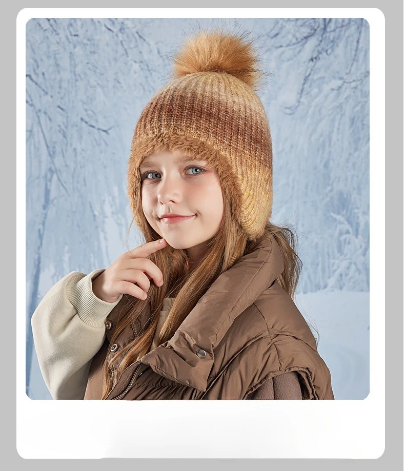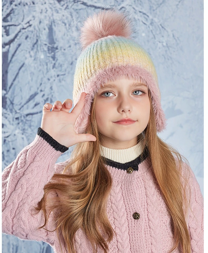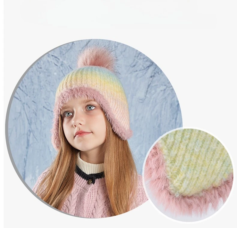 Gorro bonito de Color degradado para niño y niña, gorro de ganchillo tejido de felpa acrílica para niño pequeño, gorro cálido para otoño e invierno al aire libre