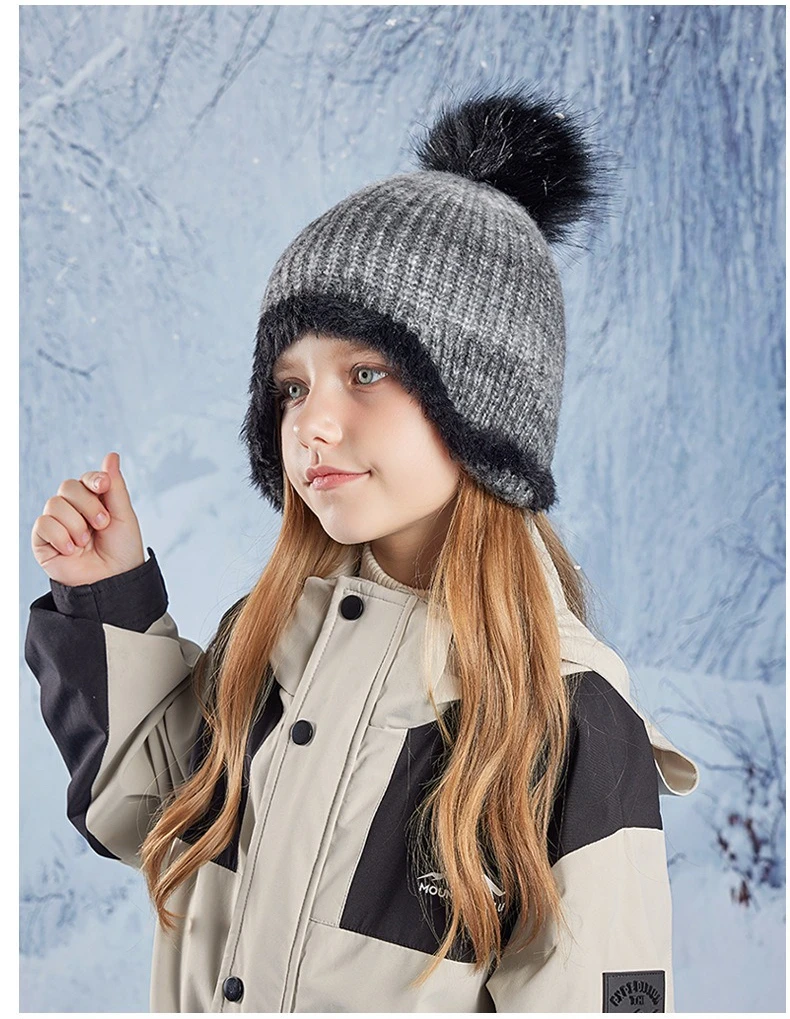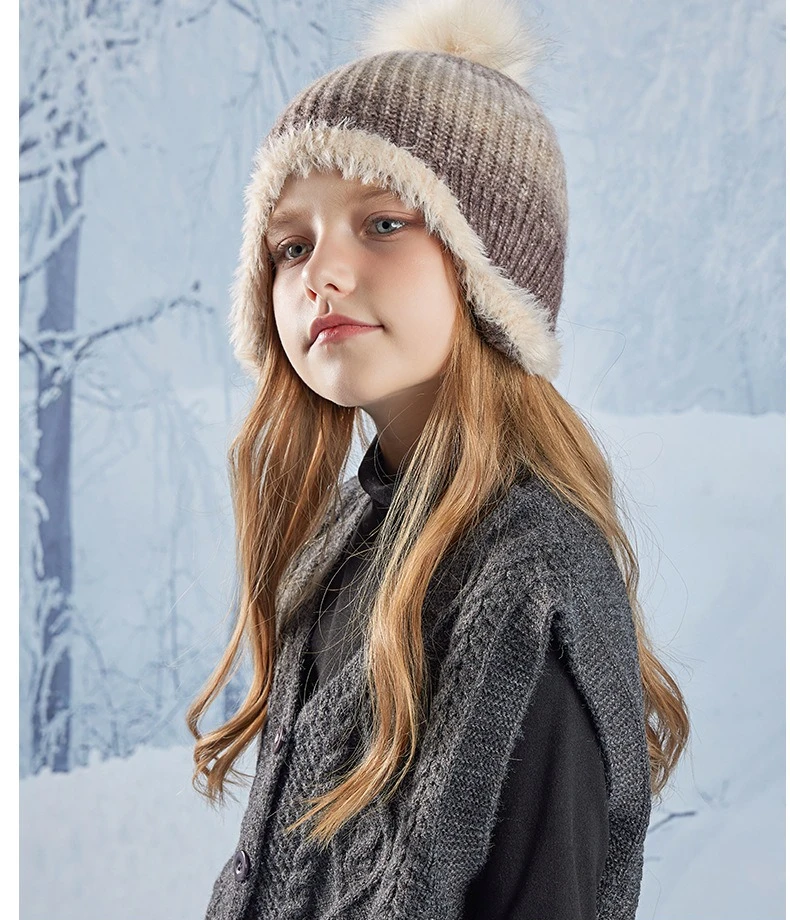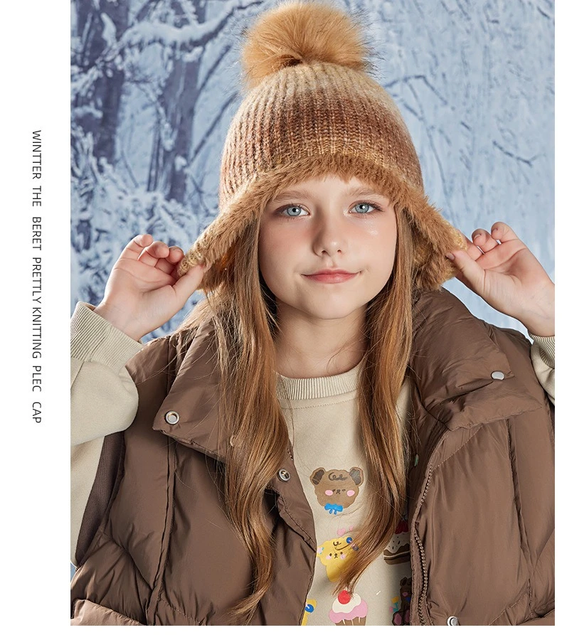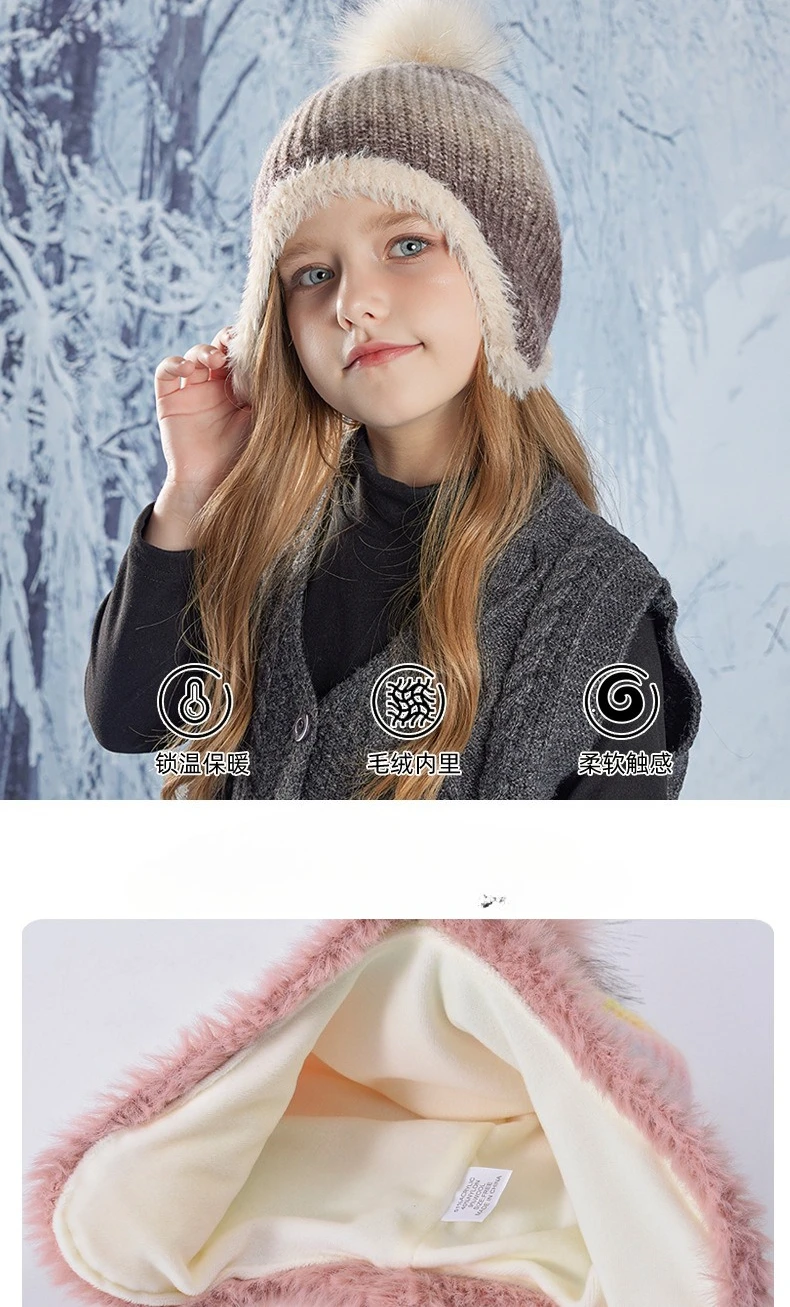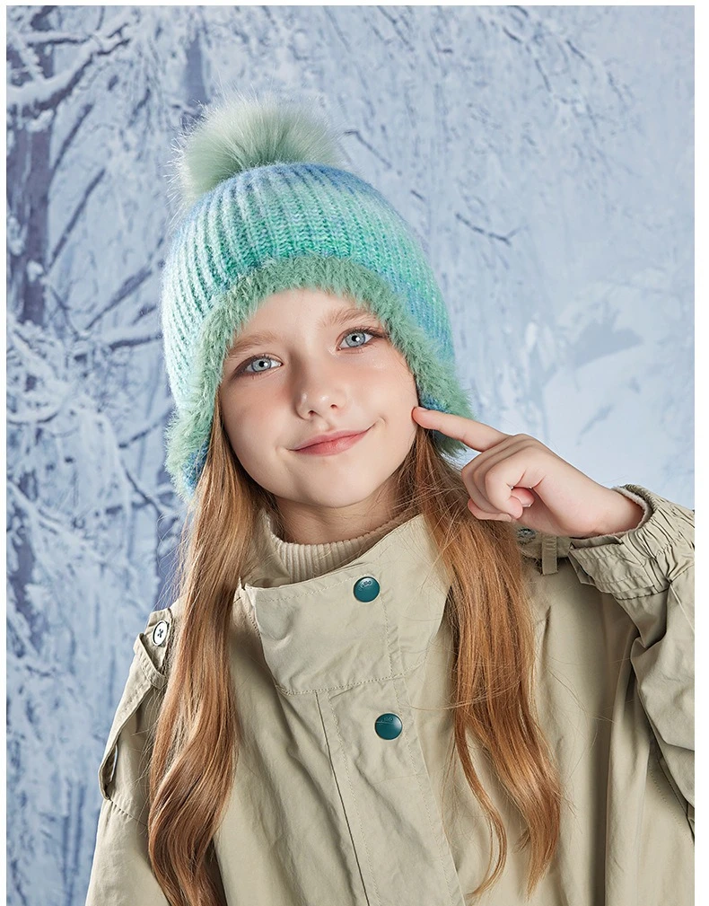 Gorro bonito de Color degradado para niño y niña, gorro de ganchillo tejido de felpa acrílica para niño pequeño, gorro cálido para otoño e invierno al aire libre