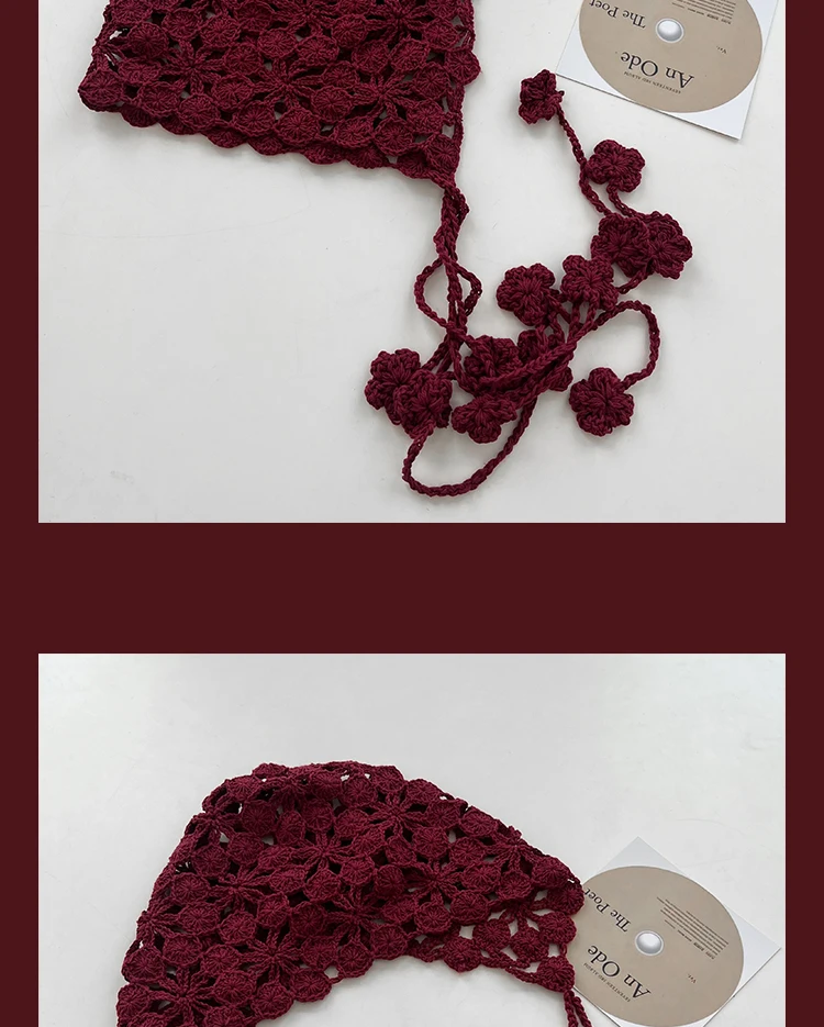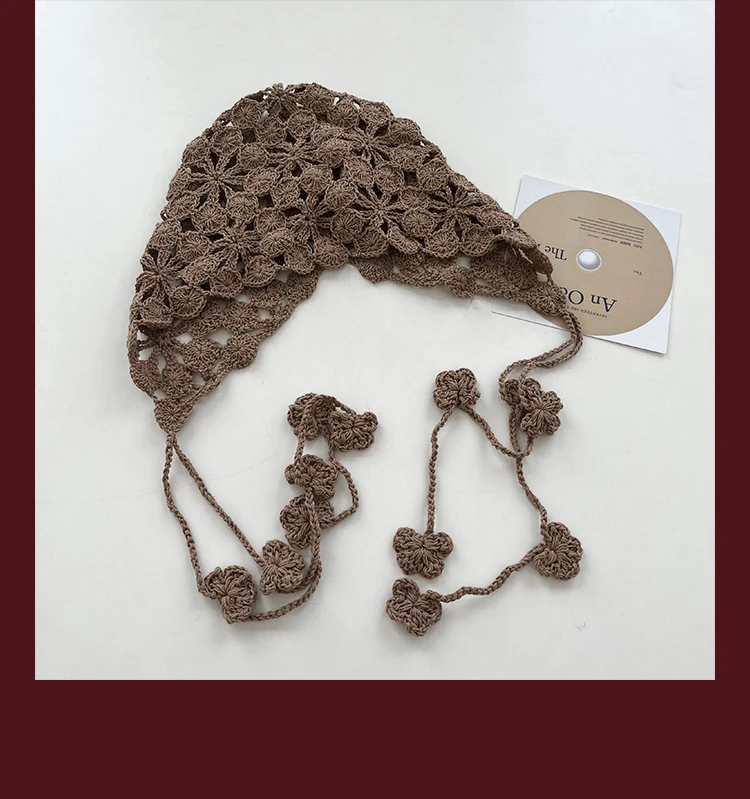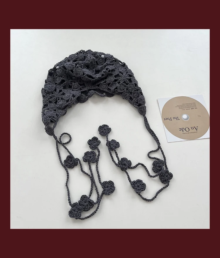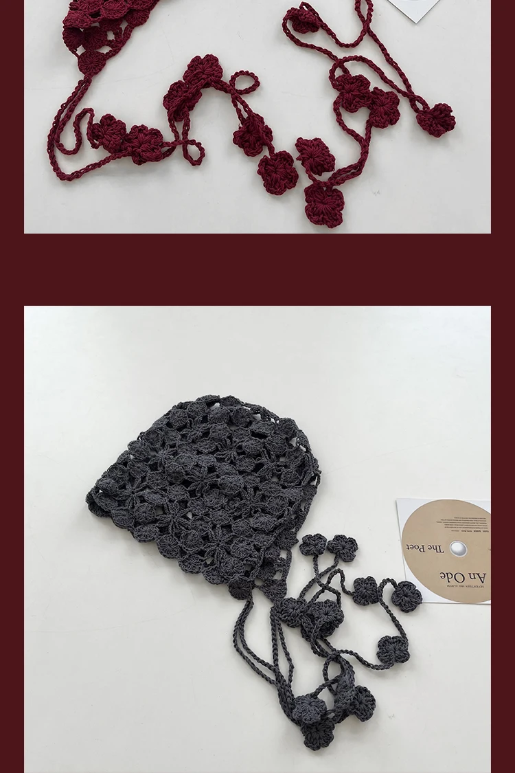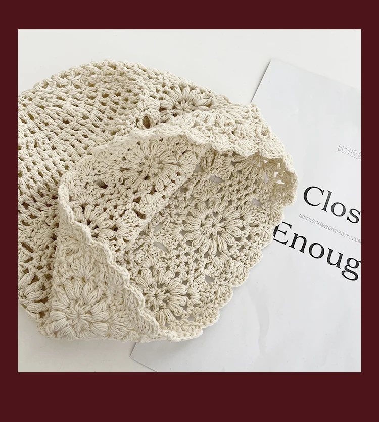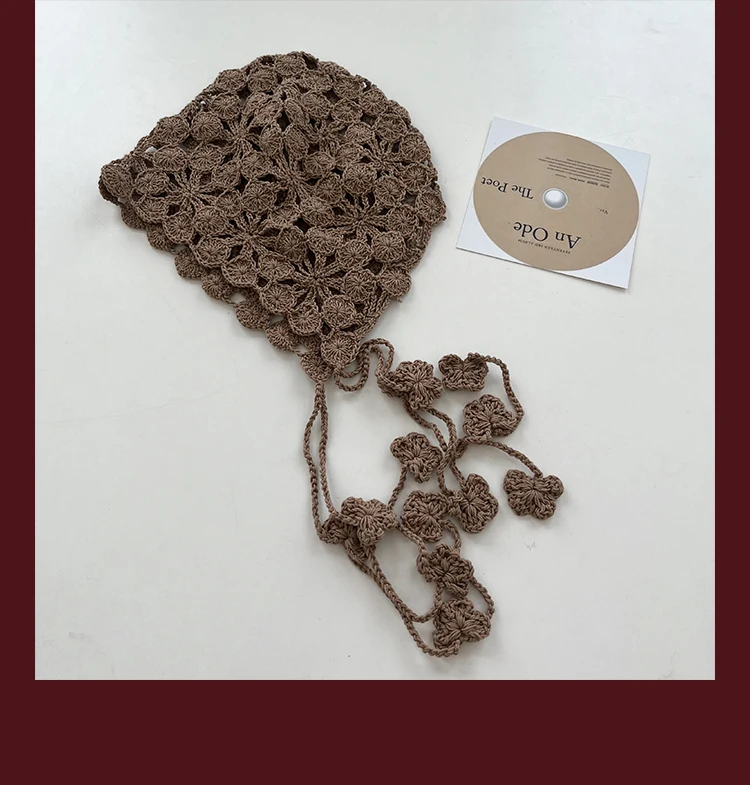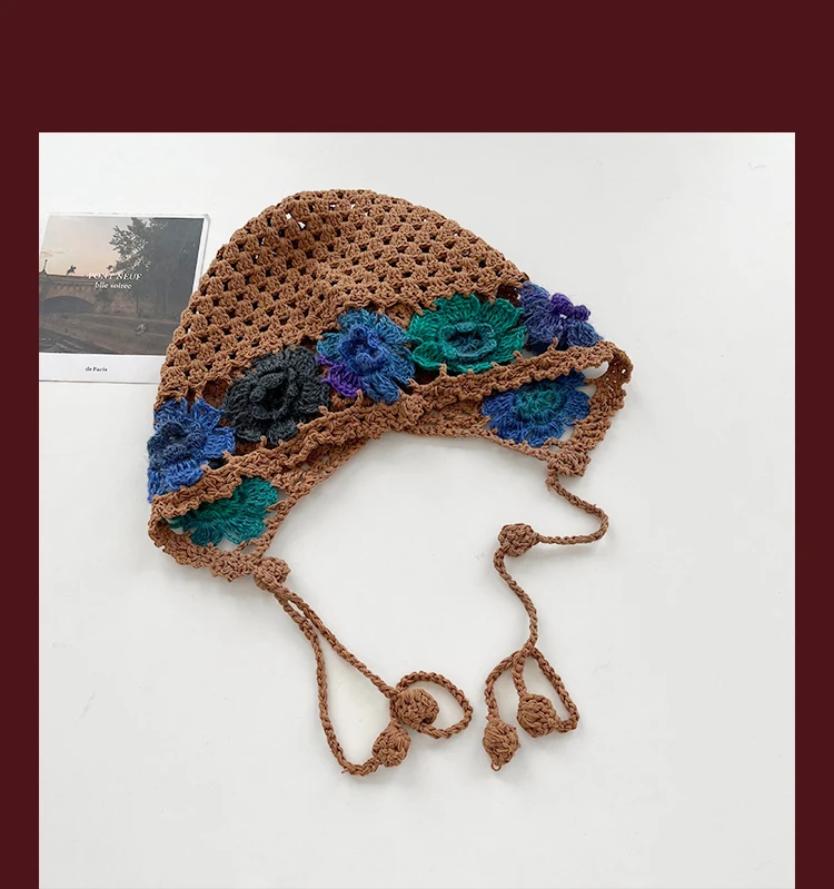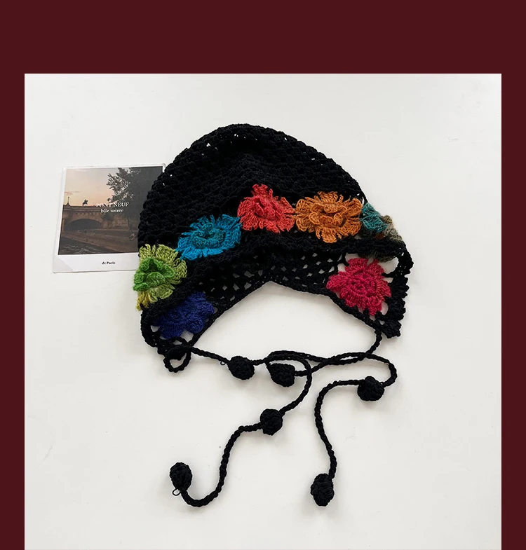 Gorro calado tejido hecho a mano para mujer, gorro de punto con gancho de flor de estilo coreano con borlas de perlas para primavera y verano