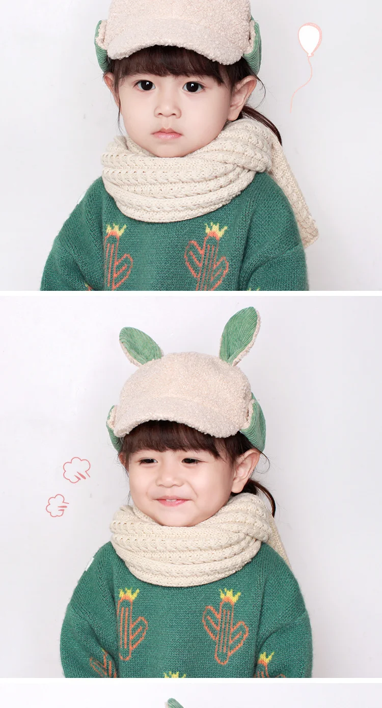 -Nombre del producto: gorro cálido de invierno para bebé, Punto de orejeras de lana de cordero, diseño de conejo bonito, sombrero de felpa de alta calidad para niños y niñas