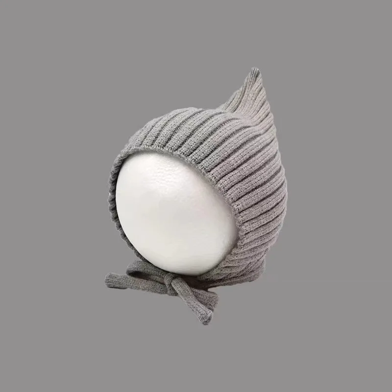 Gorro cálido tejido para bebé, gorro con protección para los oídos para bebé, Color sólido, grueso, cálido, para niño y niña, gorros de lana de ganchillo