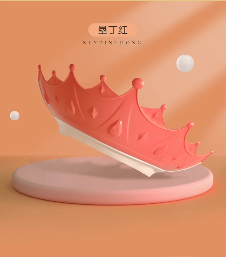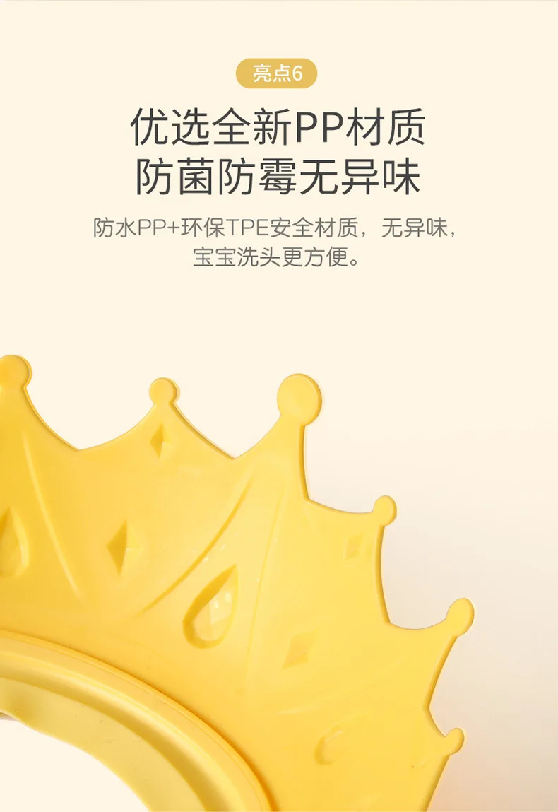 2. Aplicable para niños, haga una experiencia divertida para sus hijos. Gorro de baby shower con diseño de corona, atrae la atención del niño, haciendo más divertida la hora del baño del bebé.