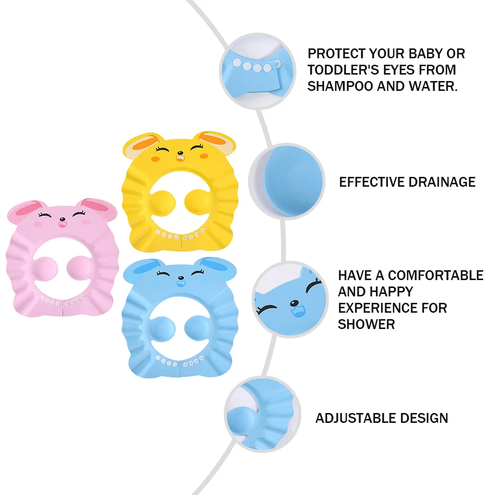 Gorros de champú para niños, gorros ajustables para Baby Shower, accesorios de baño para bebés, gorro de ducha infantil con protección para los oídos impermeable, 3 uds.