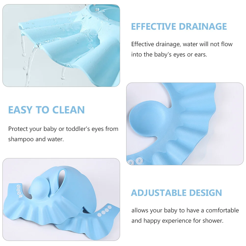 - Diseño estructural de ala de drenaje para facilitar el baño, bañar a su hijo más fácilmente y tener experiencia divertida.Gorro de champú infantil