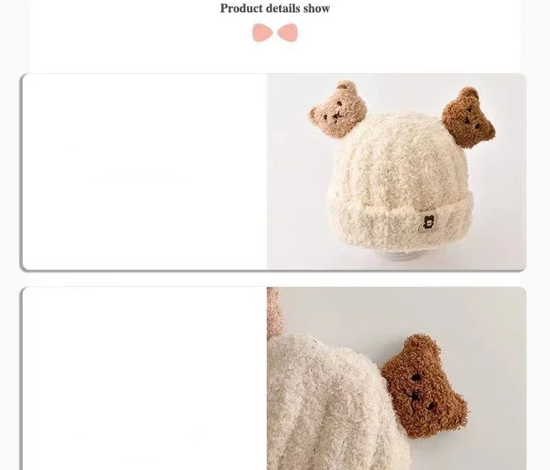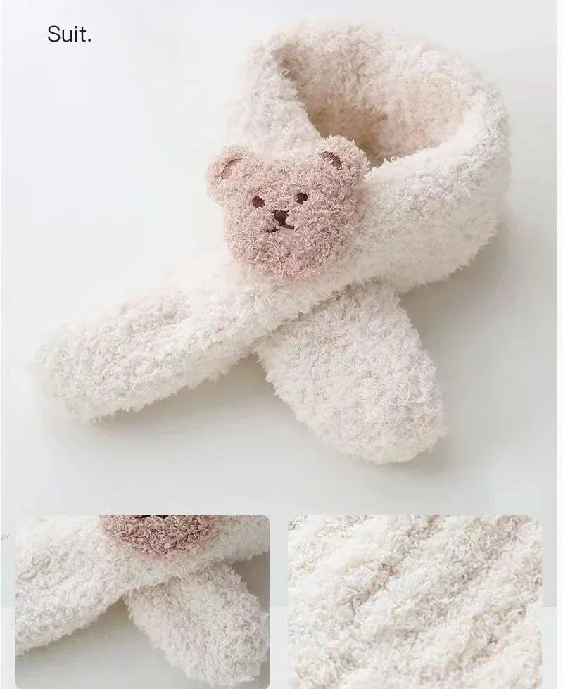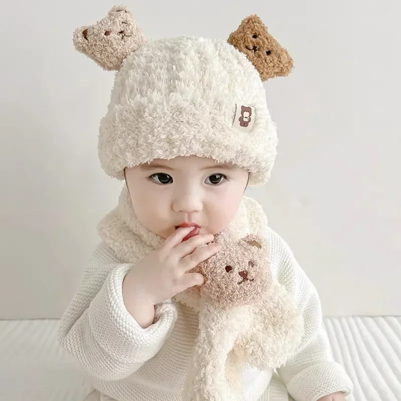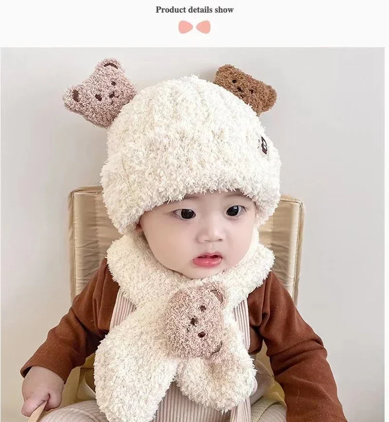 Comprar Gorro de felpa de oso pequeño para bebé, conjunto de 2 piezas, bufanda, protección para los oídos, cálido, súper lindo, Otoño e Invierno