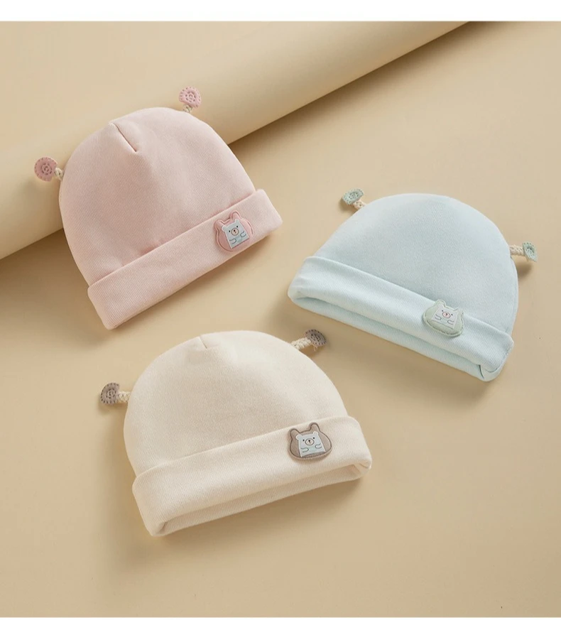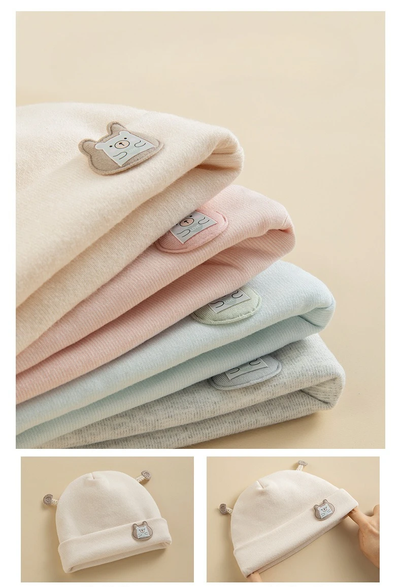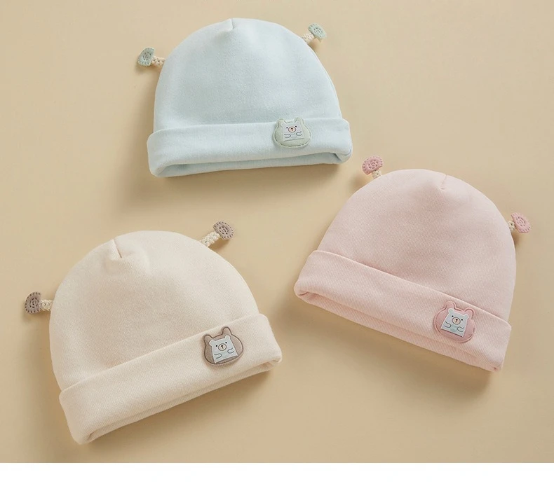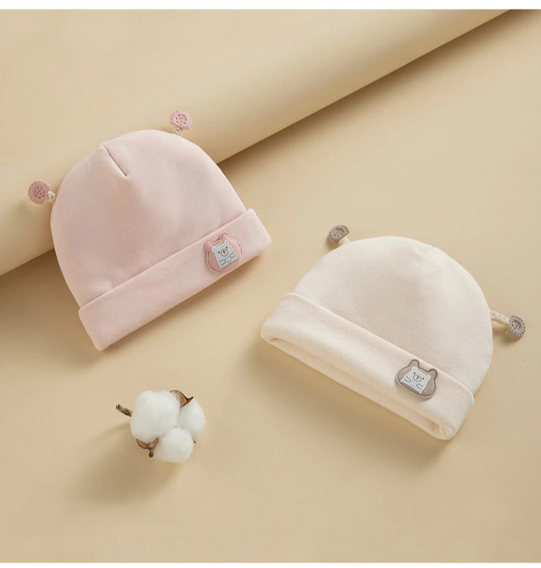 Gorro Fetal para recién nacido, gorros bonitos de oso de dibujos animados para bebé, Jersey de algodón puro grueso y cálido para invierno, gorro para niños y niñas de 0 a 6 meses