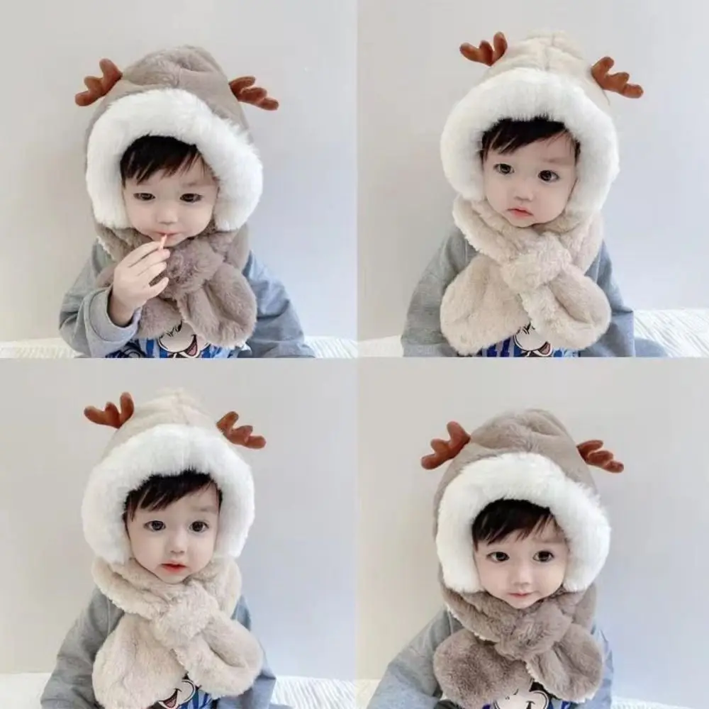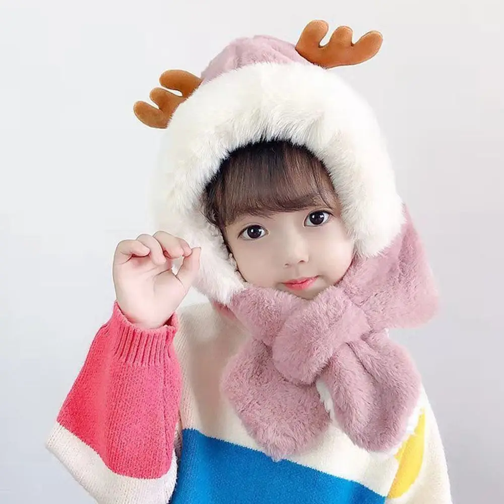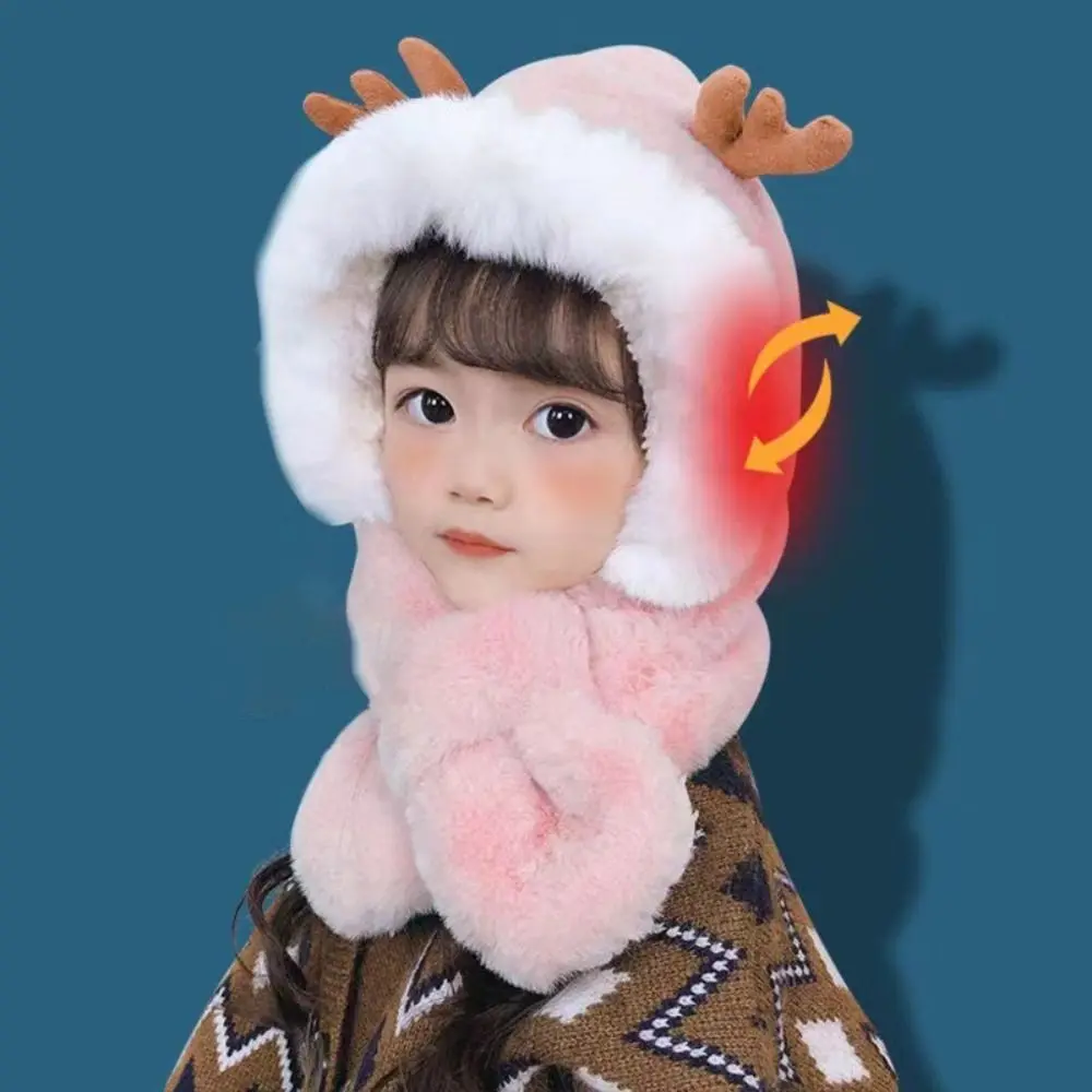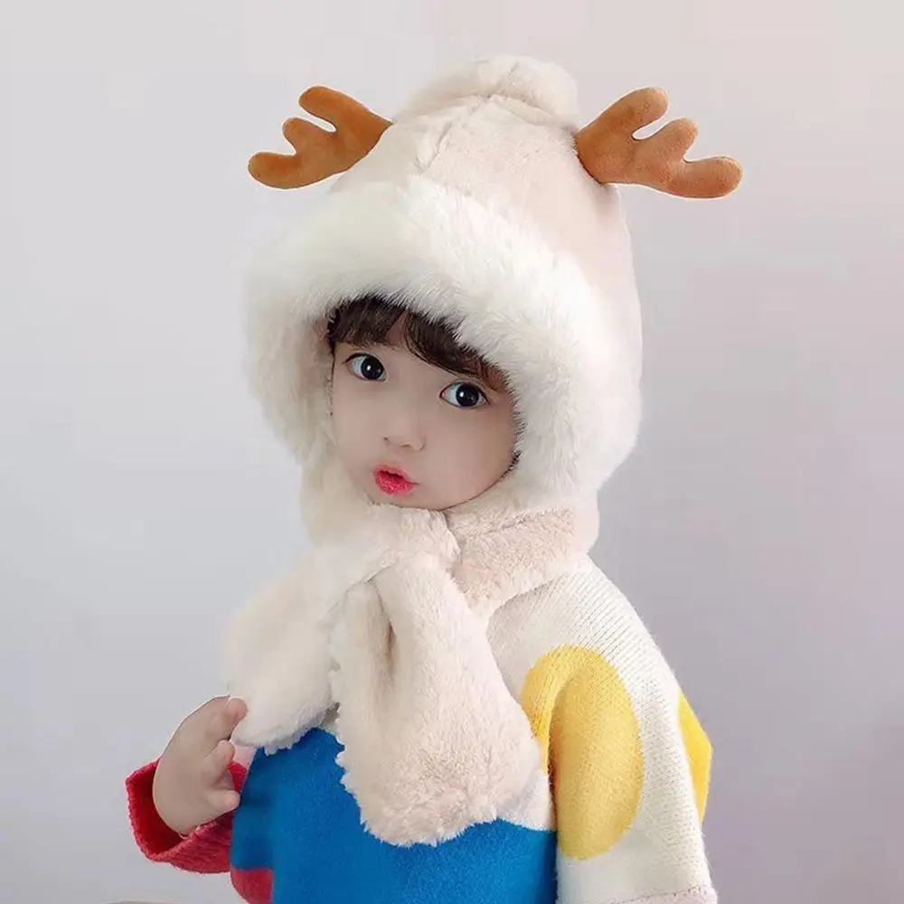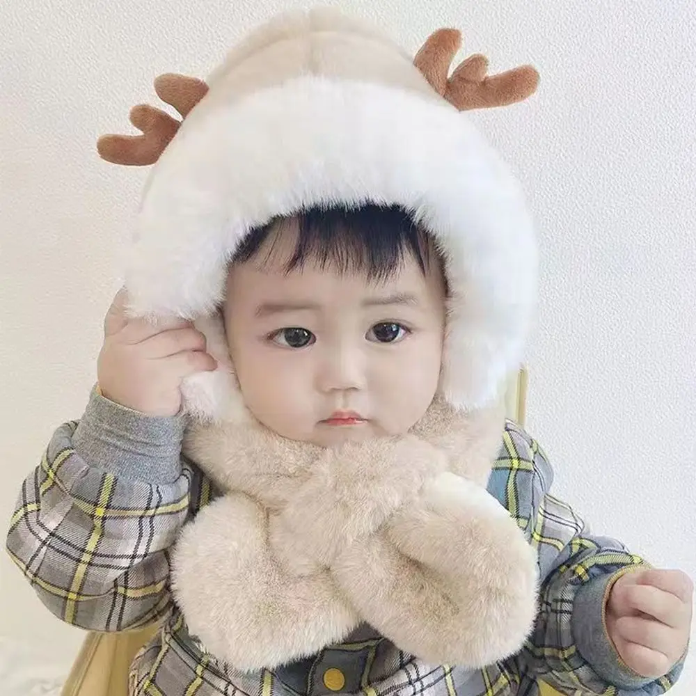 Comprar Gorro de invierno, bufanda para bebé, protección integrada para los oídos, gorro a prueba de viento, bufanda para niños, cuello de felpa, cálido gorro de esquí a prueba de viento