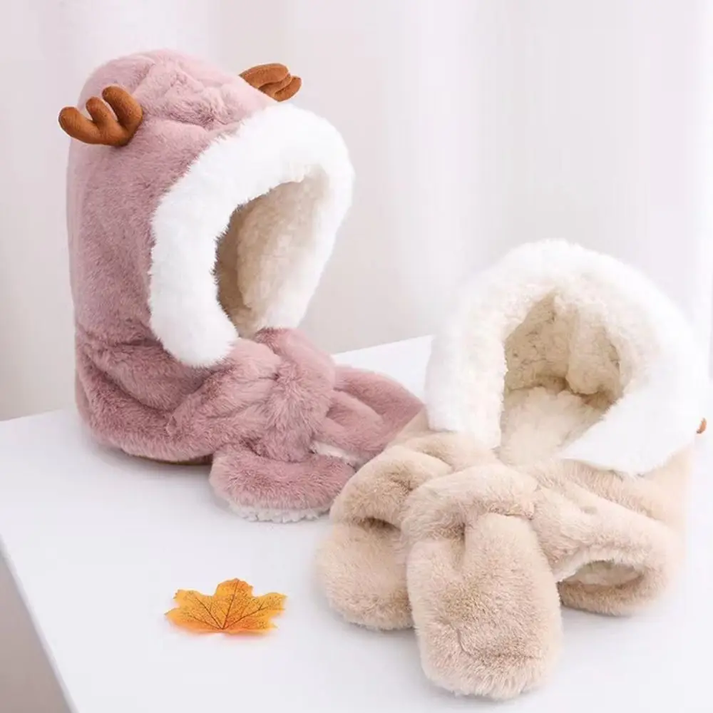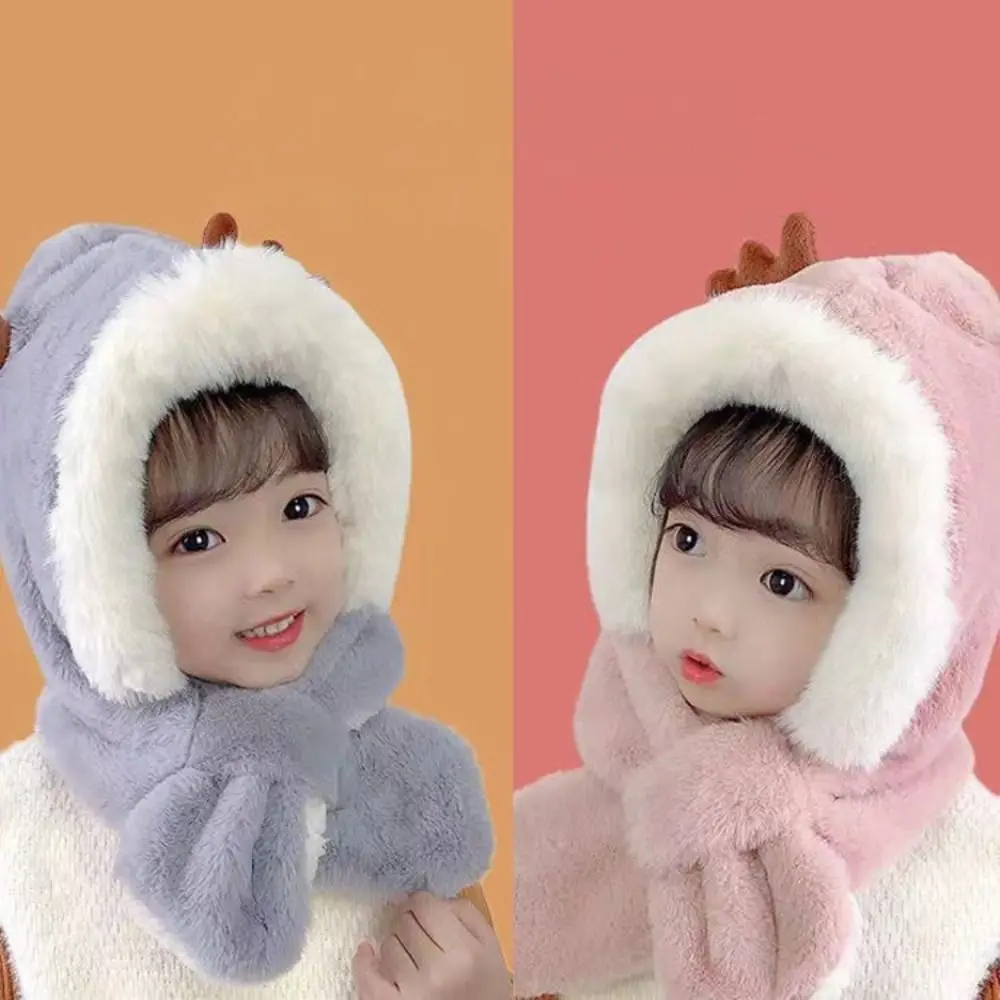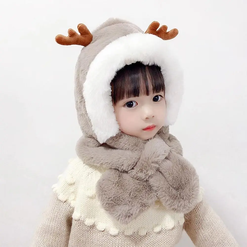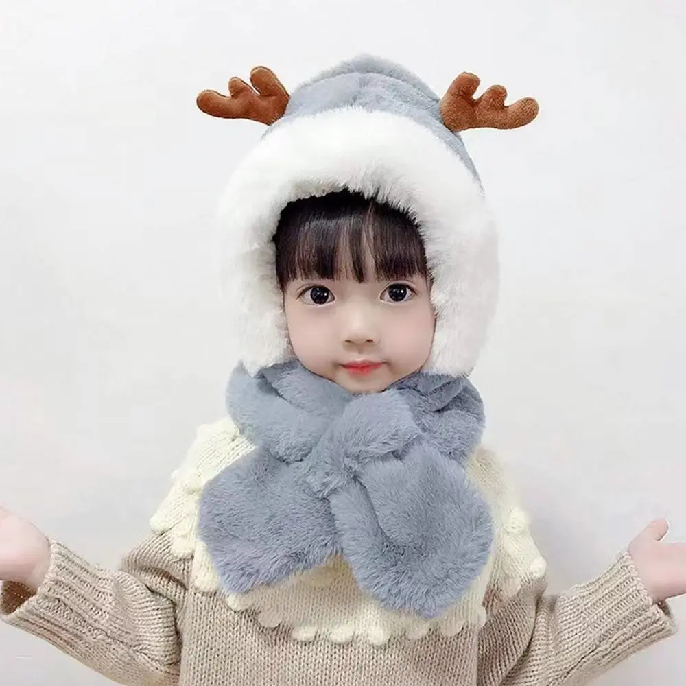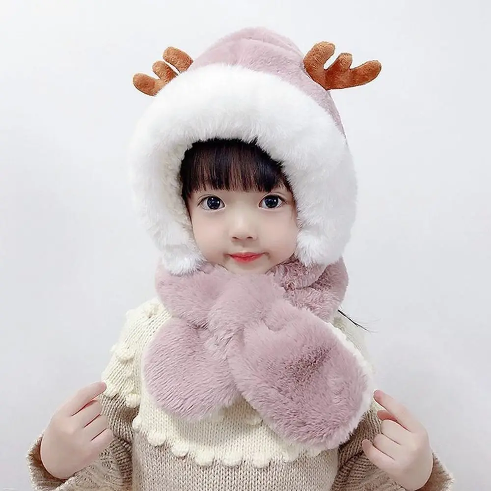 Comprar Gorro de invierno, bufanda para bebé, protección integrada para los oídos, gorro a prueba de viento, bufanda para niños, cuello de felpa, cálido gorro de esquí a prueba de viento