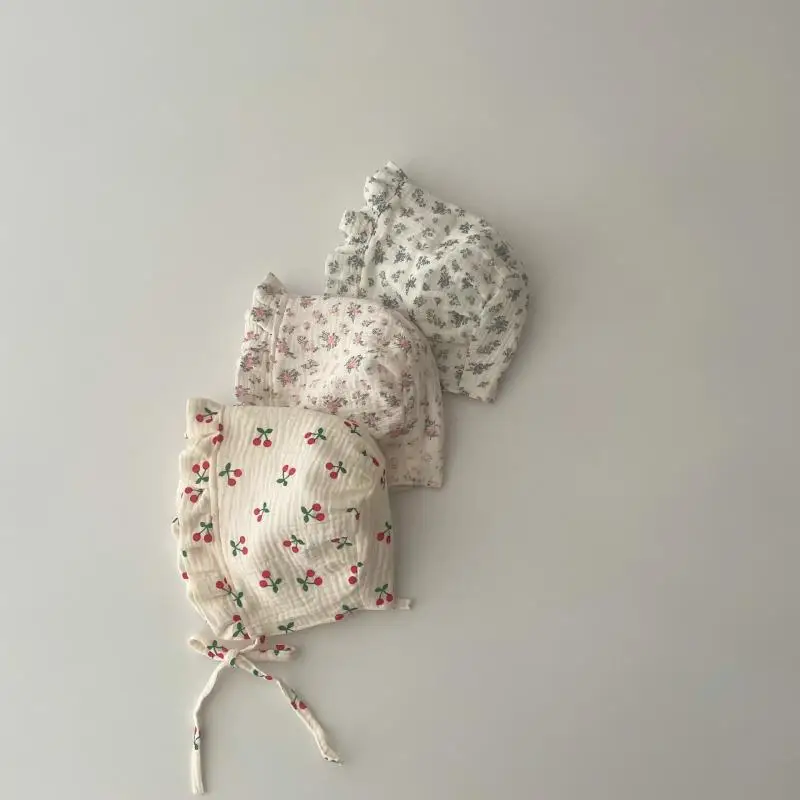 Comprar Gorro de muselina coreana para bebé, gorro con estampado de flores y puntos, accesorios para niños pequeños, primavera y verano