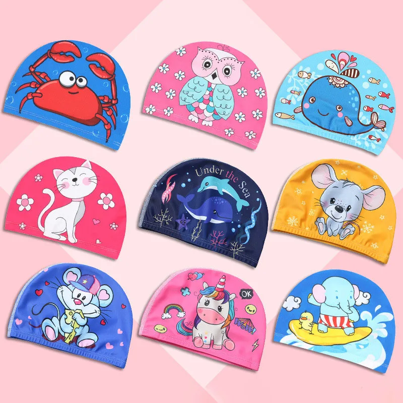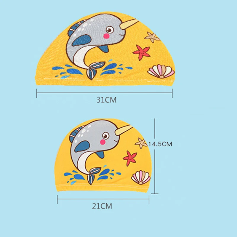 Comprar Gorro de natación elástico impermeable con dibujos animados para niños, niñas y niños, gorros de natación con protección para los oídos, gorros para el sol y la piscina