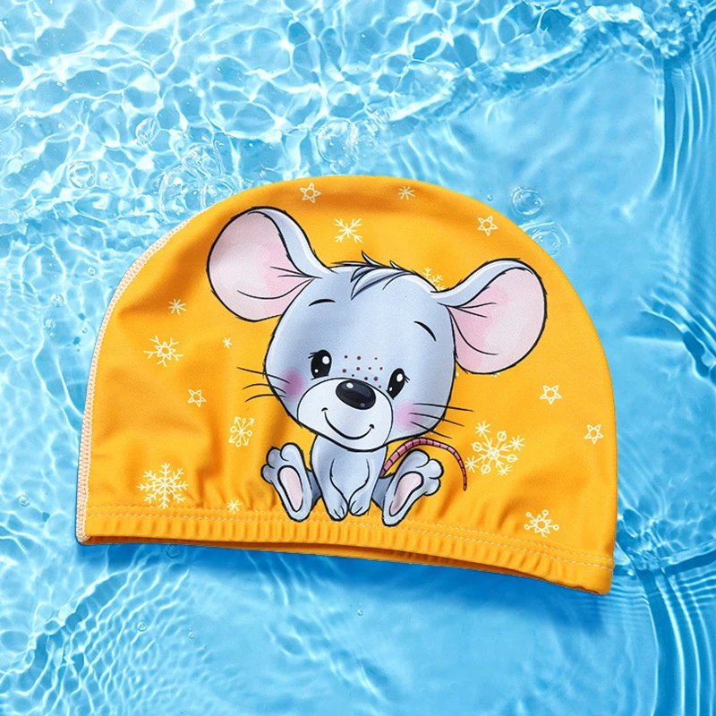 Gorro de natación elástico impermeable con dibujos animados para niños, niñas y niños, gorros de natación con protección para los oídos, gorros para el sol y la piscina