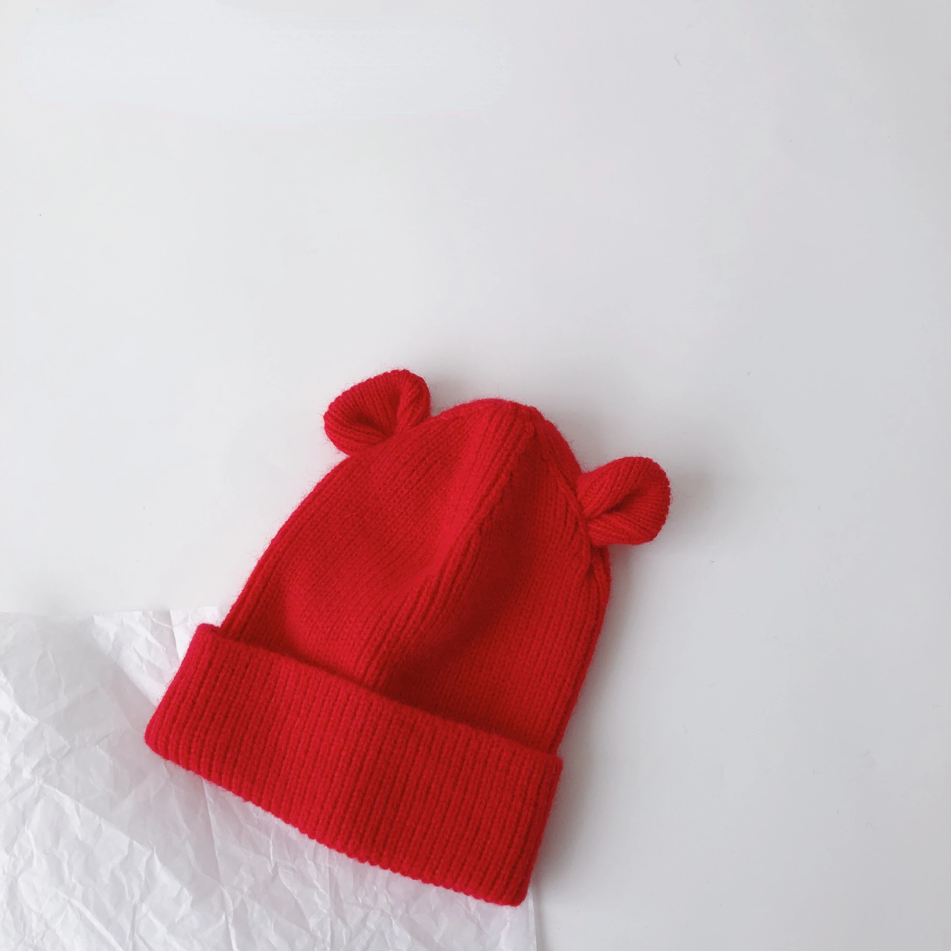 Gorro con orejas de oso de dibujos animados para bebé, gorros de punto suaves y cálidos para niño y niña, gorro de Color sólido para niño pequeño, gorros para niños