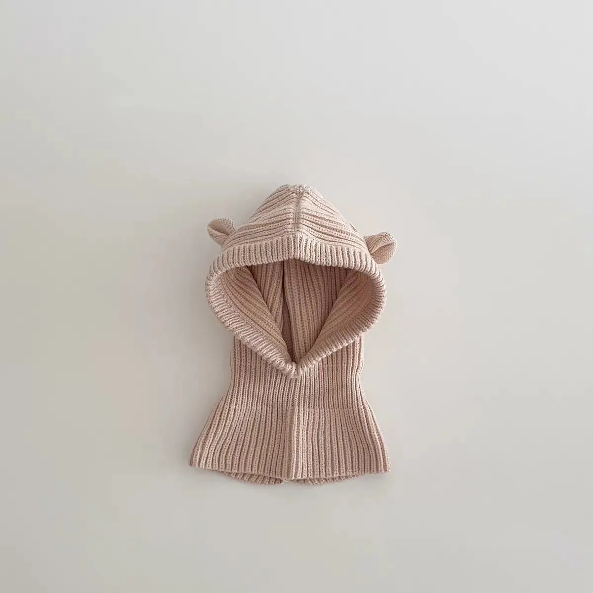 Gorro de pasamontañas coreano para niños, gorro con solapa para las orejas de invierno con bufanda, capucha, bonito diseño de orejas de Animal, gorro tejido para bebés, conjunto calentador de cuello cálido