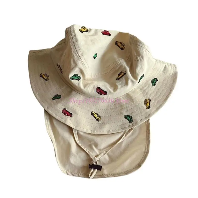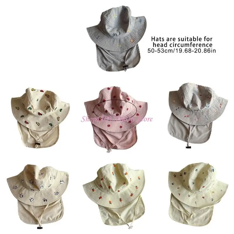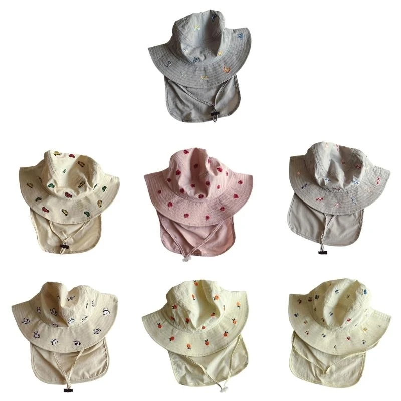 Características:OOTDTYGorro de lavabo de secado rápido para niños, gorro chal bordado para niños y niñas, sombrero de pescador con protección solar al aire libre.