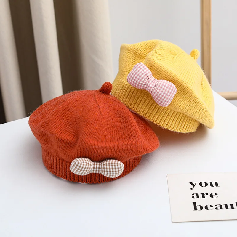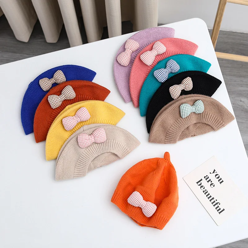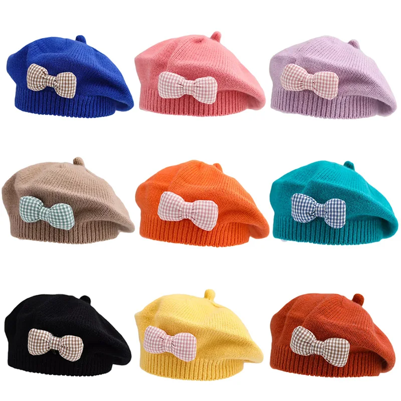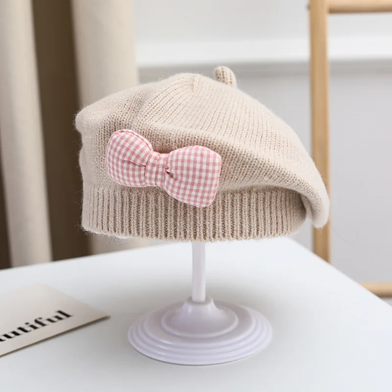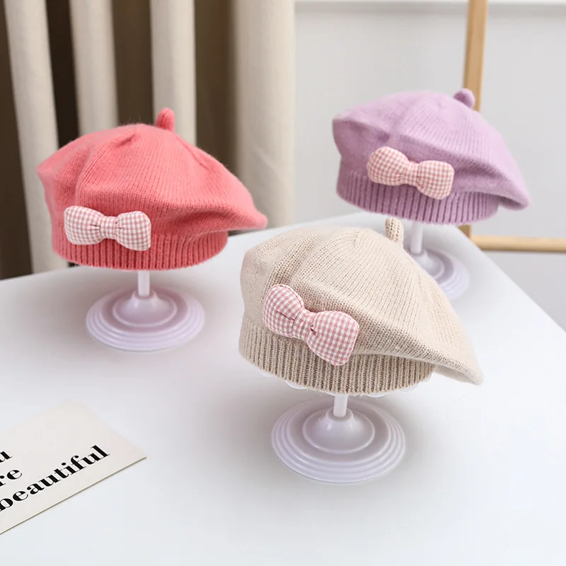 Comprar Gorro de princesa con lazo para niña, Boina de punto para niña, gorro de moda para primavera e invierno, accesorios para bebé de 1 a 4 años