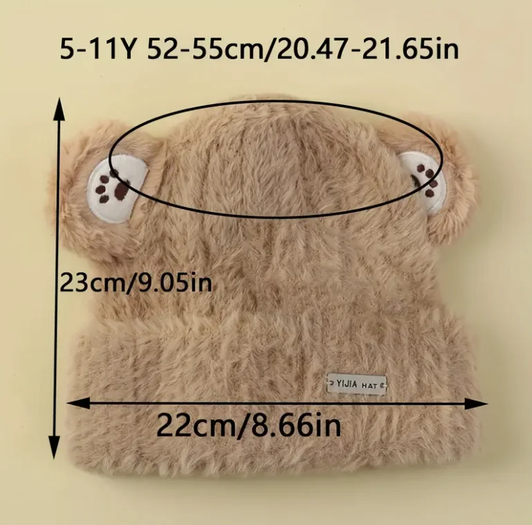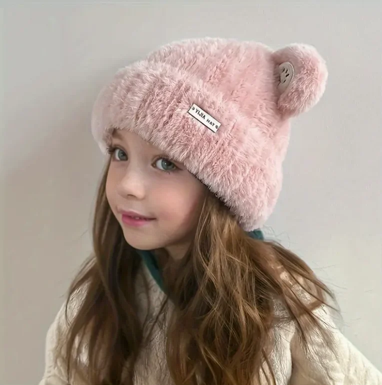 Gorro con protección para los oídos para niños y niñas de 6 a 11 años, gorro grueso y cálido con dibujos animados, bonito e informal, para invierno