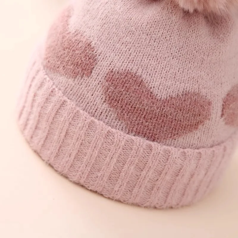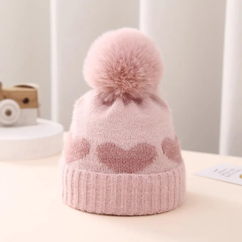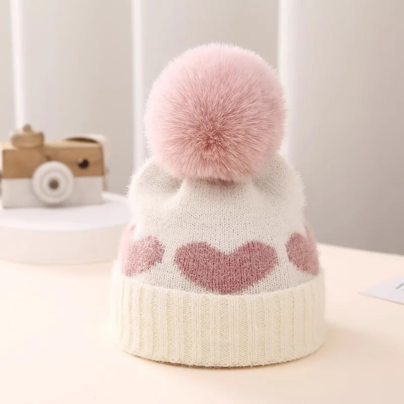 Gorro de punto con bola de terciopelo en forma de corazón, suave y cálido, bola de terciopelo de felpa, lleno de elasticidad, adecuado para salidas diarias