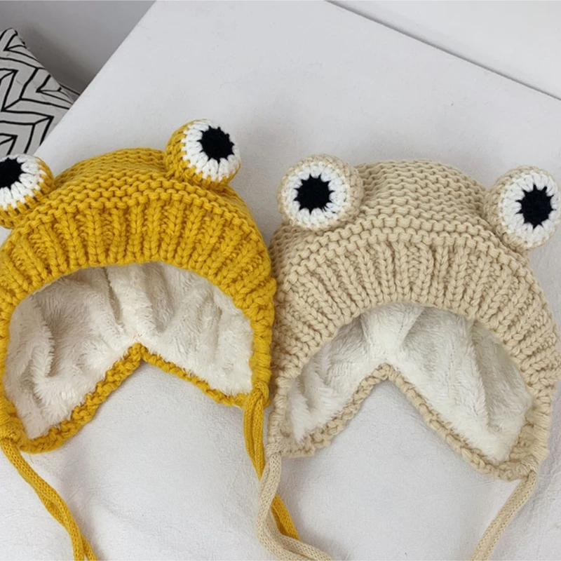Estos lindos gorros con ojos de rana y orejeras, excelente cobertura para la cabeza y las orejas.Manténgase seguro en su lugar con las chinstraps.