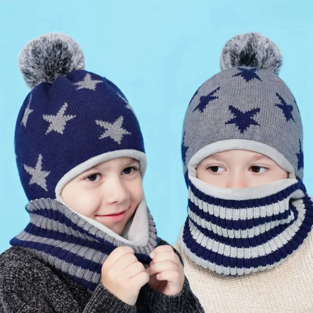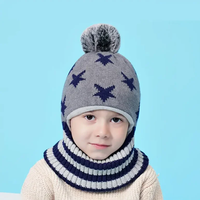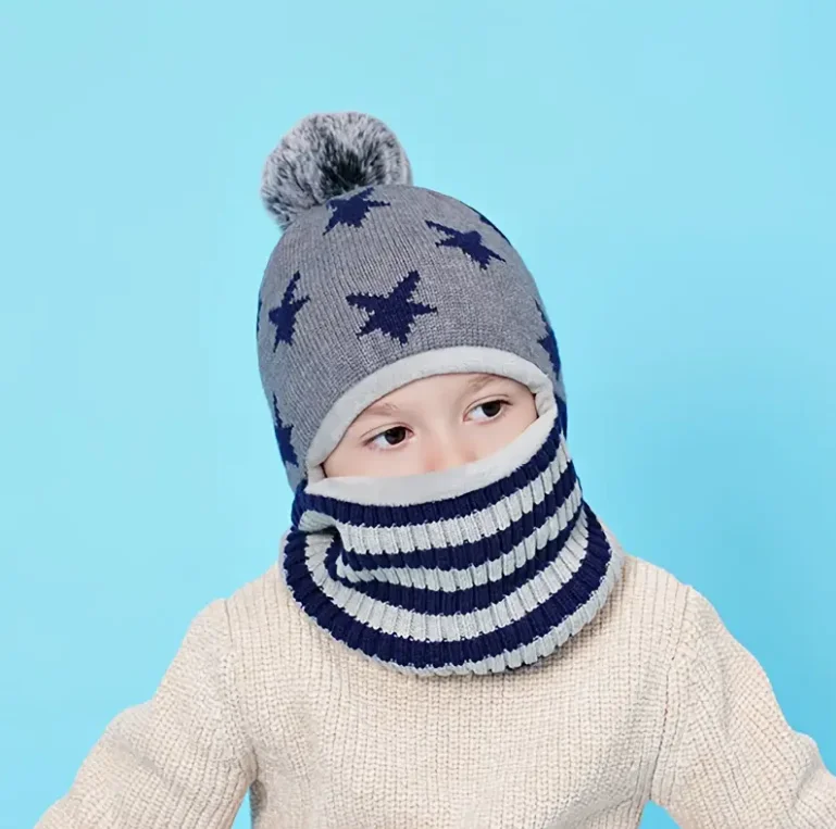 Gorro de punto de moda de dibujos animados cálido y grueso para niños y niñas de 3 a 7 años con orejeras resistente al frío a prueba de viento elástico ajustable