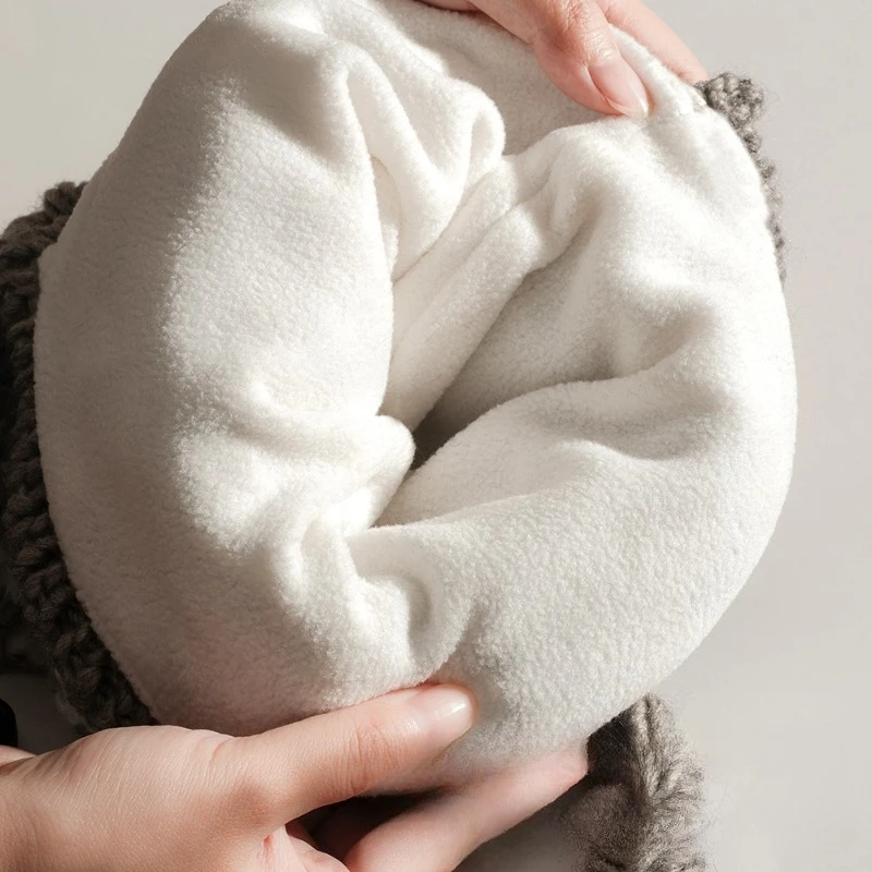 Gorro de punto para niños estilo japonés Ins, cálido con forro polar para otoño-invierno, patrón jacquard, orejeras, suave para bebés.