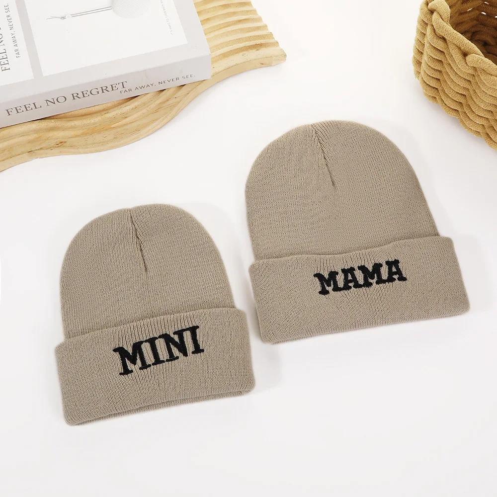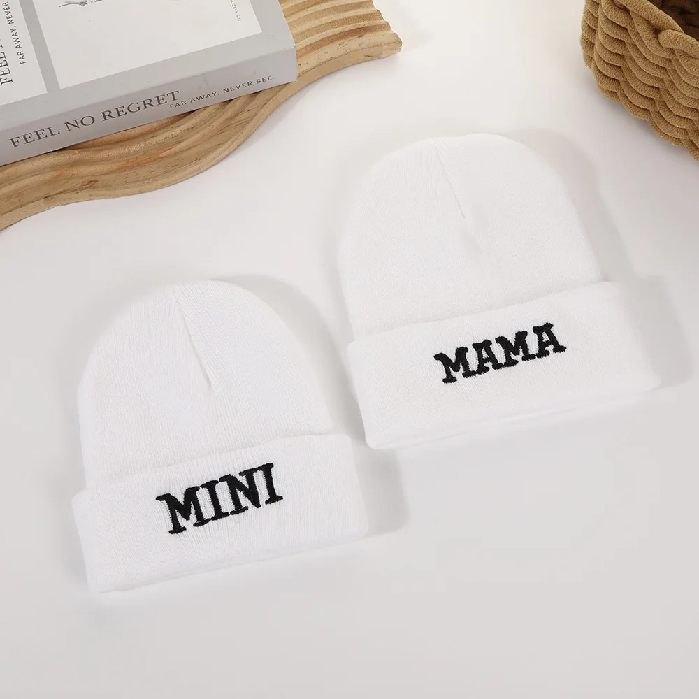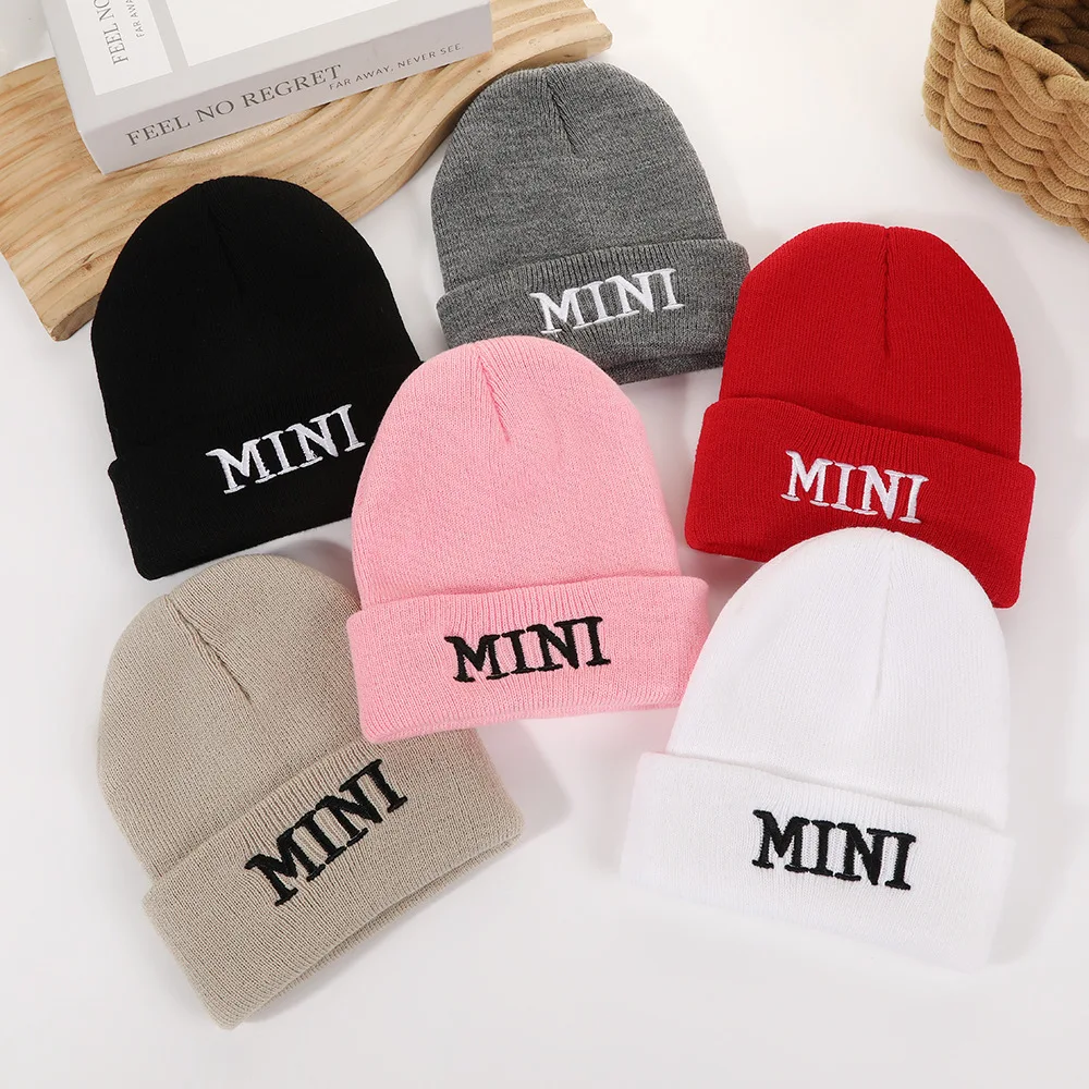 Gorro de punto para niños de otoño e invierno europeo y americano: bordado de letras, gorra elegante y moderna para clima frío, gorro cálido y versátil.