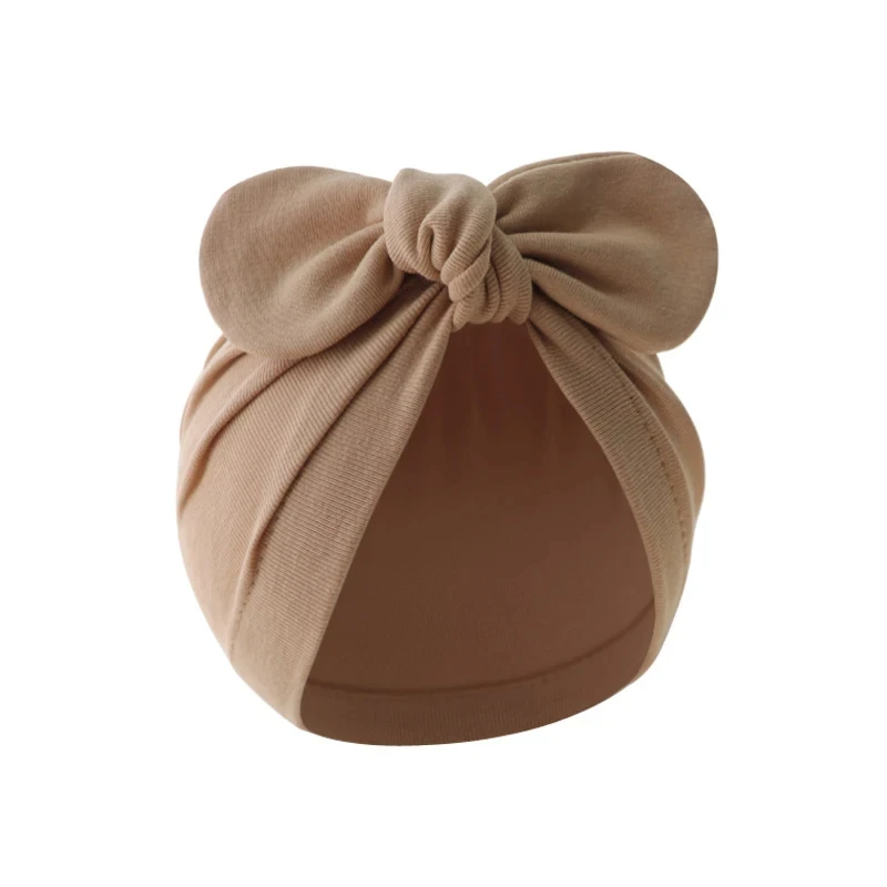 Comprar Gorro para recién nacido para niñas y niños, gorros de turbante con lazos bonitos, gorro infantil de algodón, gorro para niños pequeños de Color sólido, accesorios para bebés de 0 a 24M