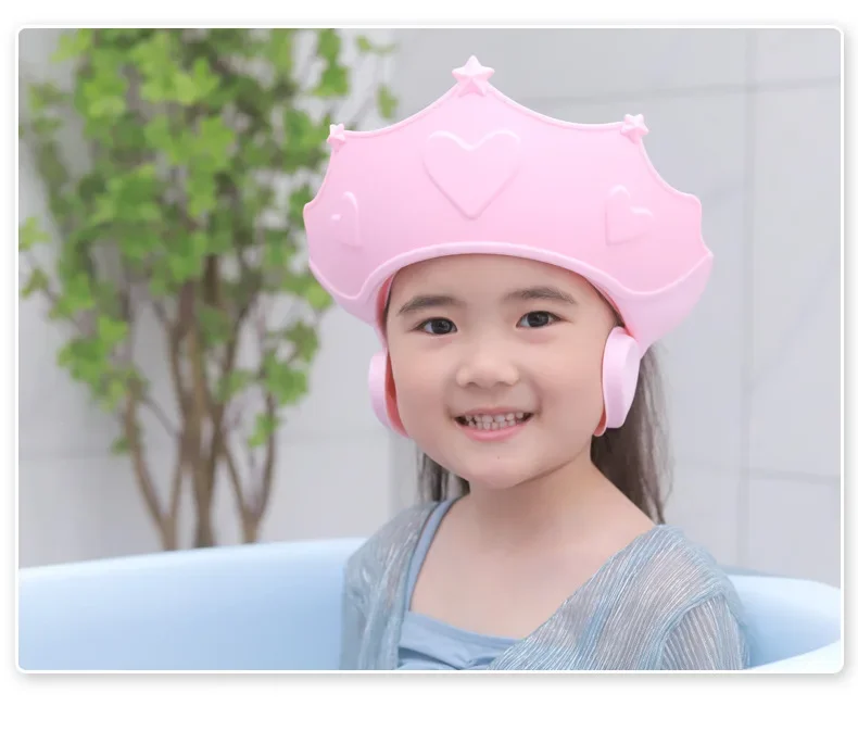 1. Ajuste el tamaño apropiado de acuerdo con la circunferencia de la cabeza del bebé, colóquelo en la cabeza del niño de arriba a abajo, deje que el cabello quede expuesto y mantenga las orejas y los ojos debajo de la tapa del champú.