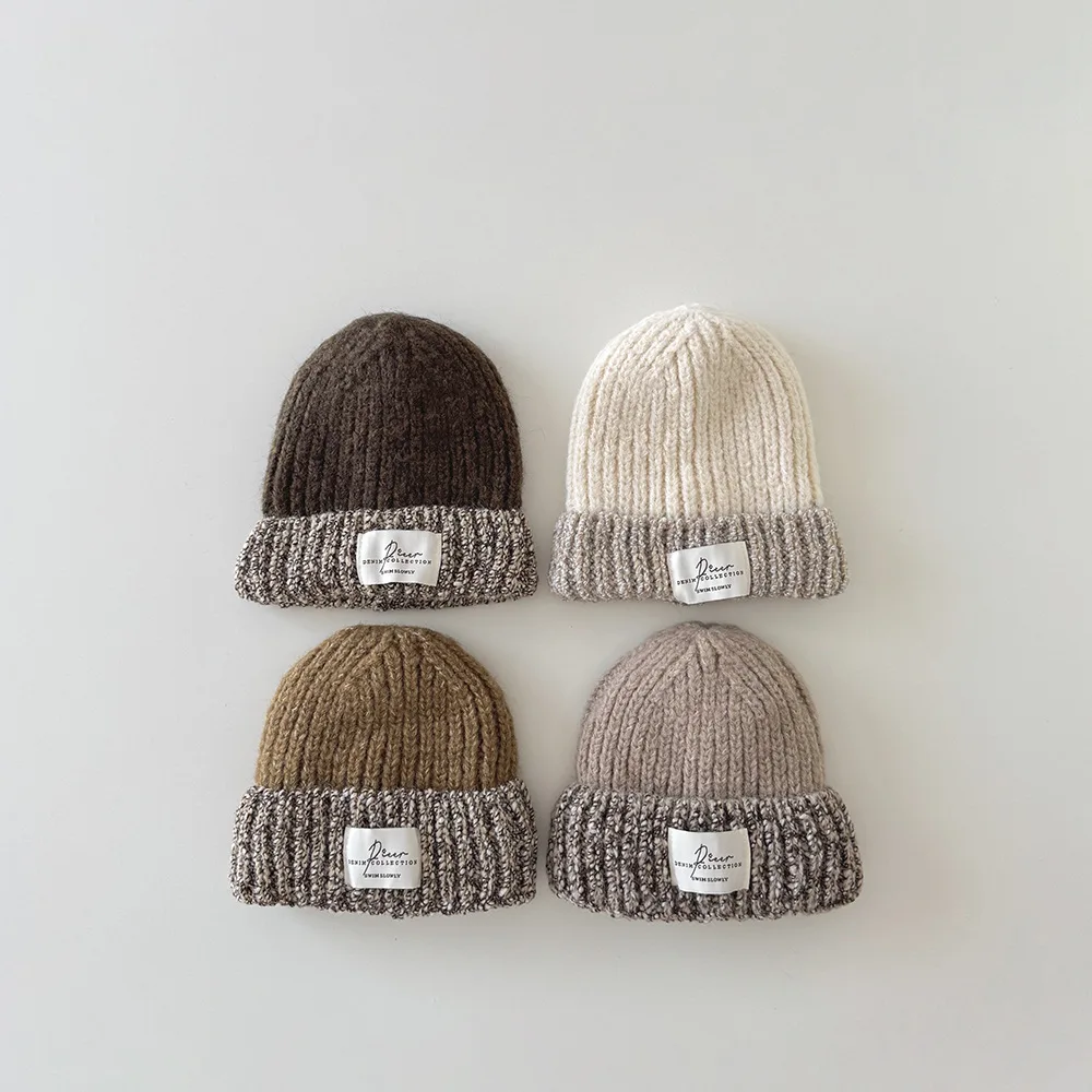 Gorro tejido de invierno para niños con orejeras, gorro térmico grueso y cálido para niños pequeños, gorro elástico Simple y versátil, calentador de orejas para niños