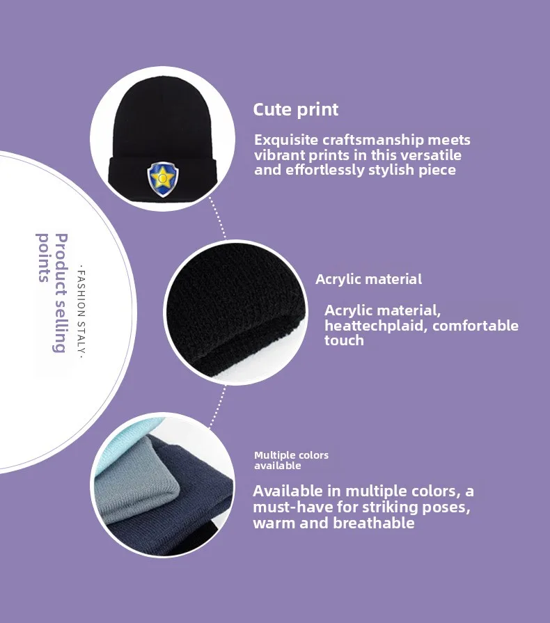 Gorro tejido de punto de Disney Stitch para invierno, gorros fríos cálidos para exteriores de Color sólido, gorro de punto bordado a la moda de Hip-Hop para niños y niñas