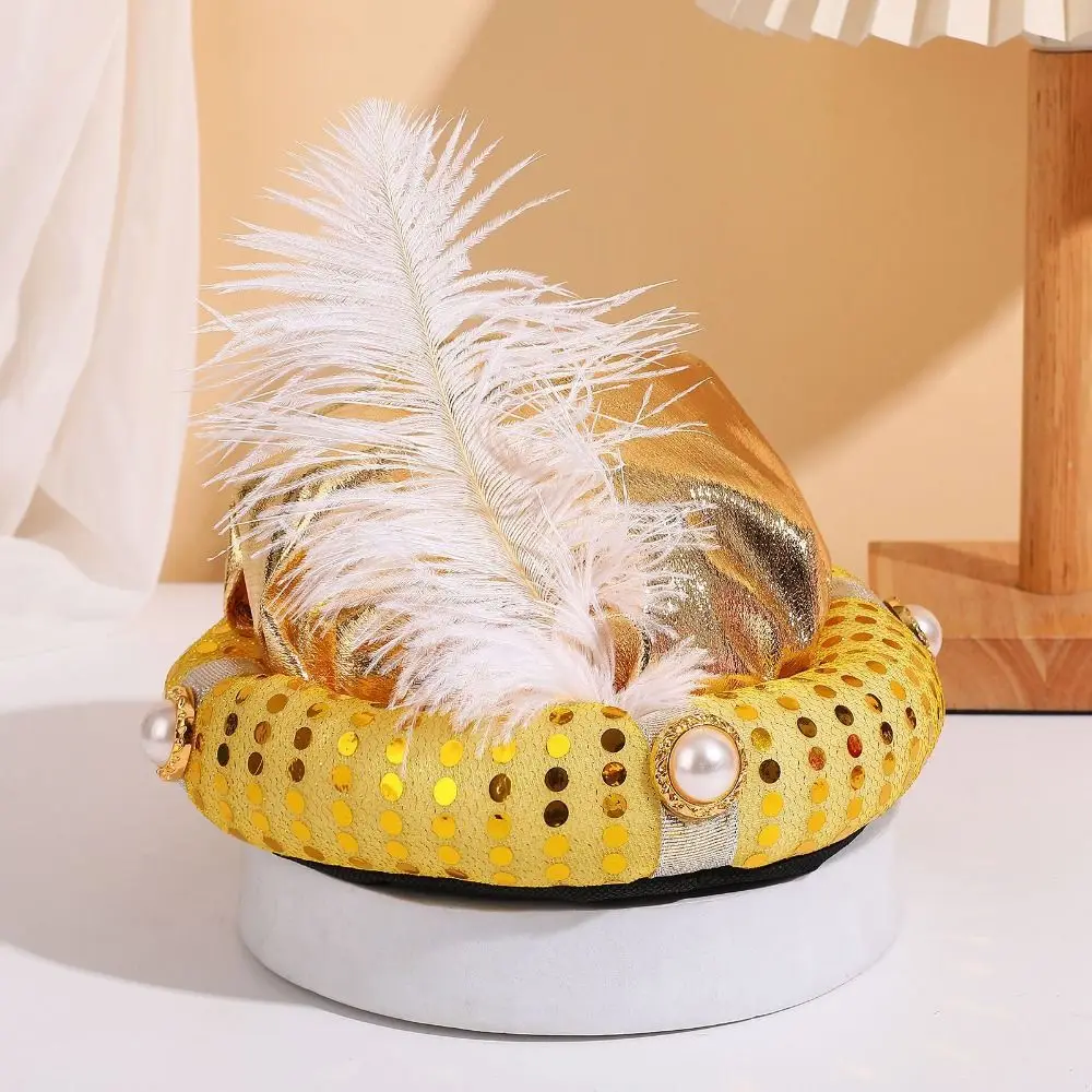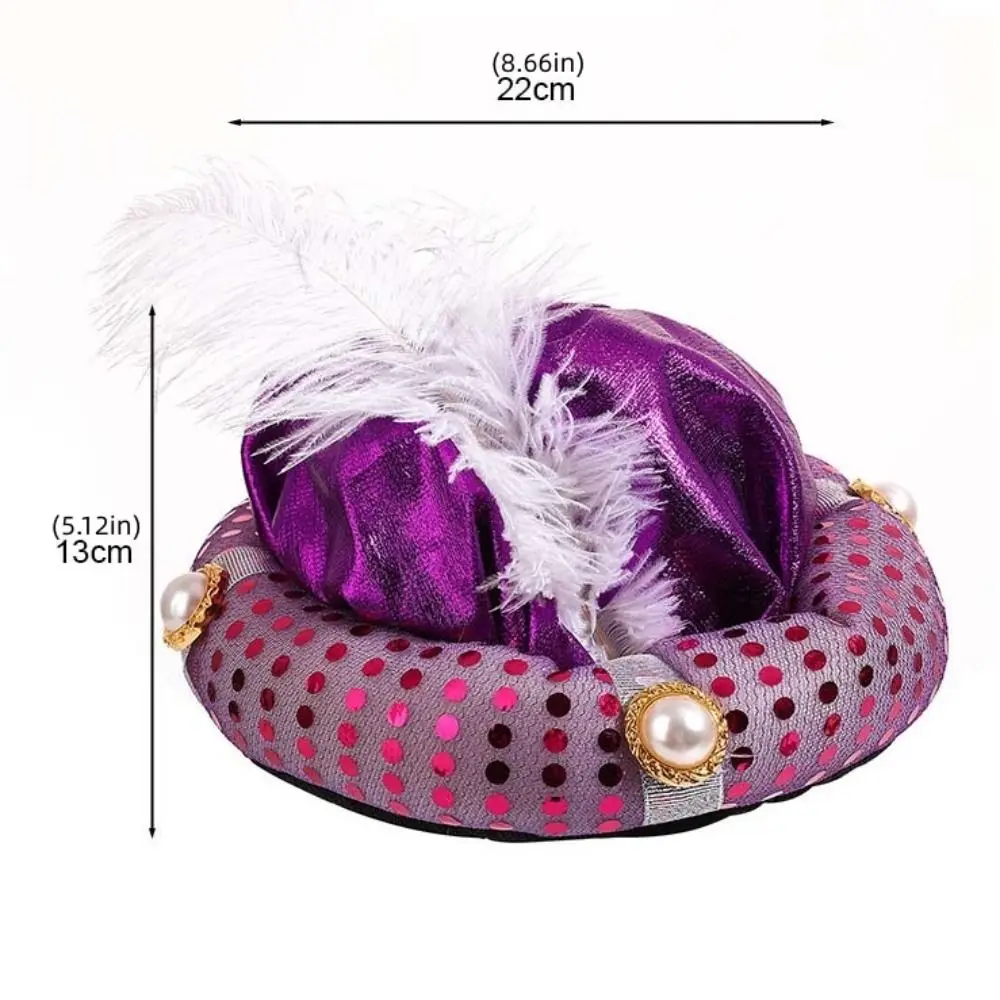 Party Prop: The Arabian design costume party hat features a unique design with feather details, adding an exotic touch to your costume.