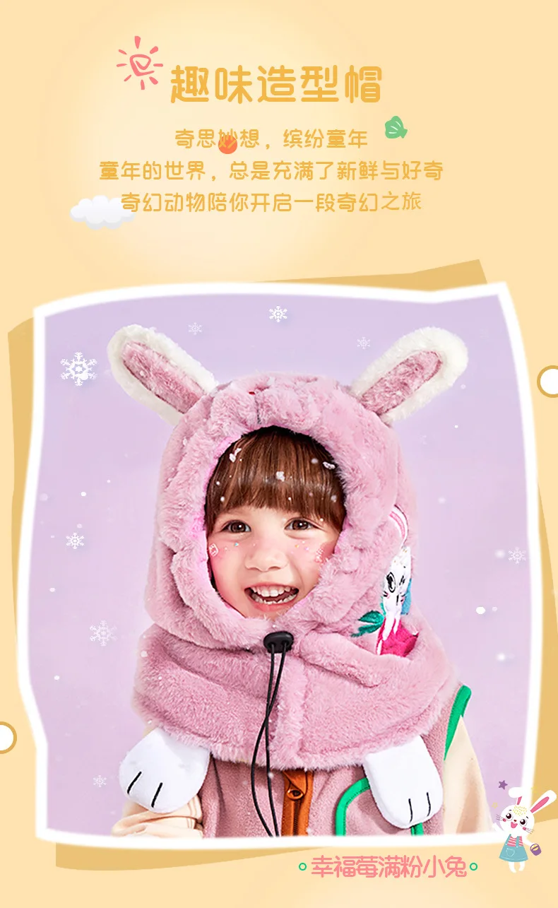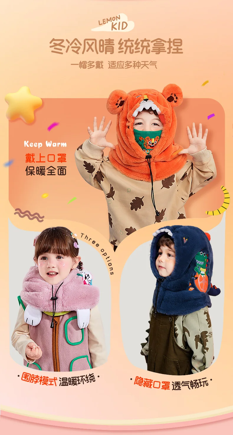Comprar Gorros de dibujos animados tridimensionales para niños, una pieza con capucha, sombreros cálidos para niños, Invierno