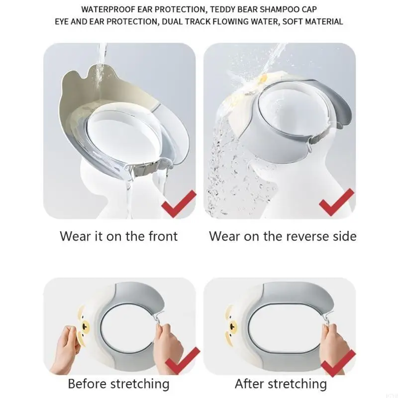 Gorros ducha bebé D7YD, gorro ajustable para lavado para niños, gorro con protección para los oídos seguro Unisex,