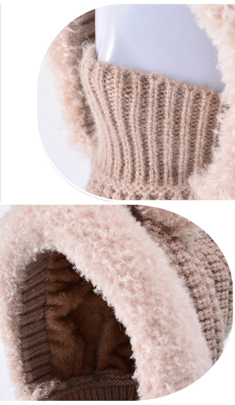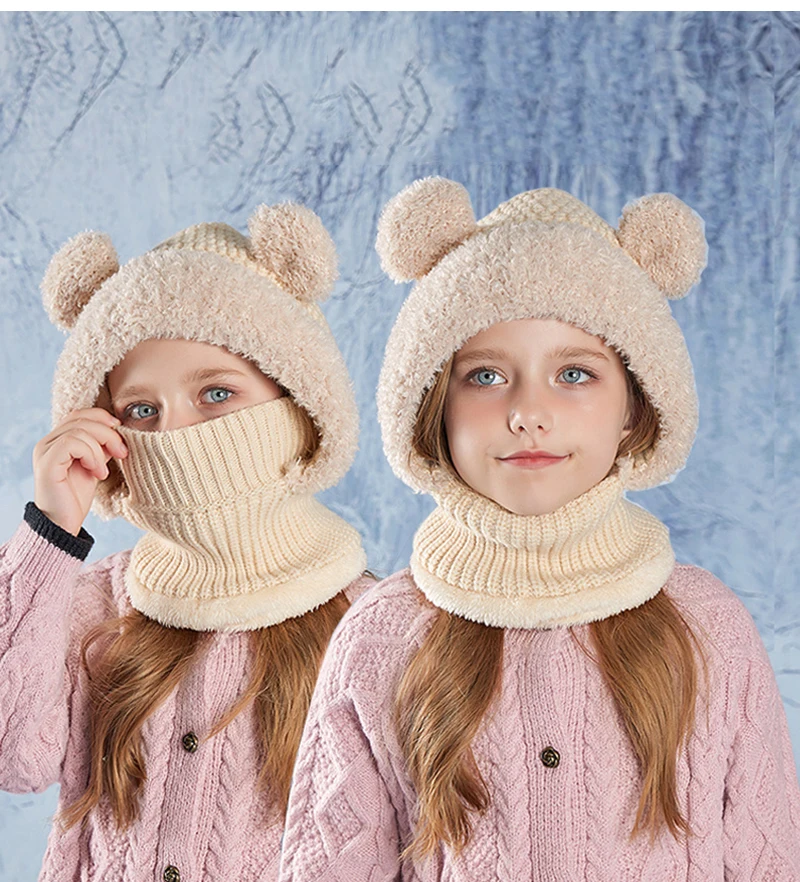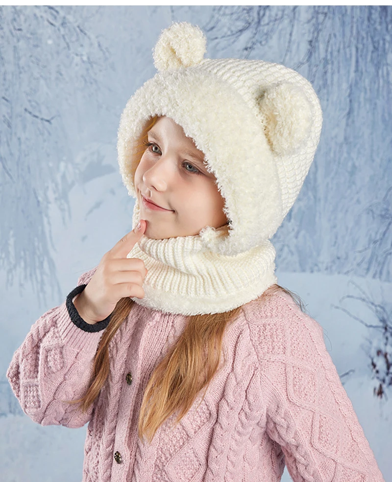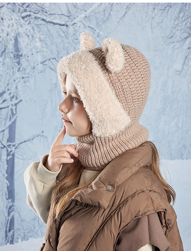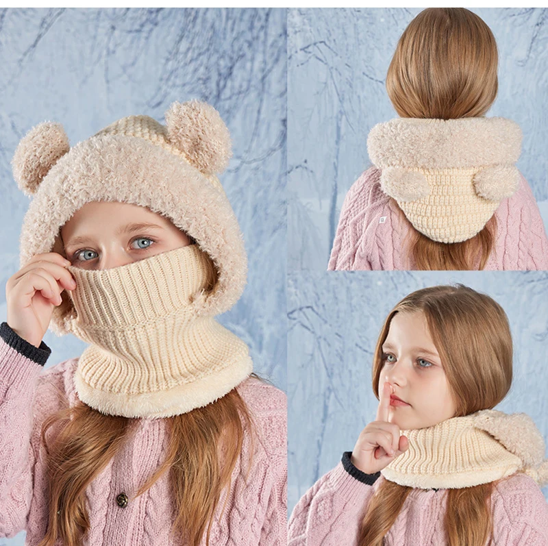 Comprar Gorros de invierno para niños, bufandas con máscara de oso, gorro de una pieza, gorros cálidos de terciopelo con protección para los oídos, accesorios para niños al aire libre a la moda, 2024