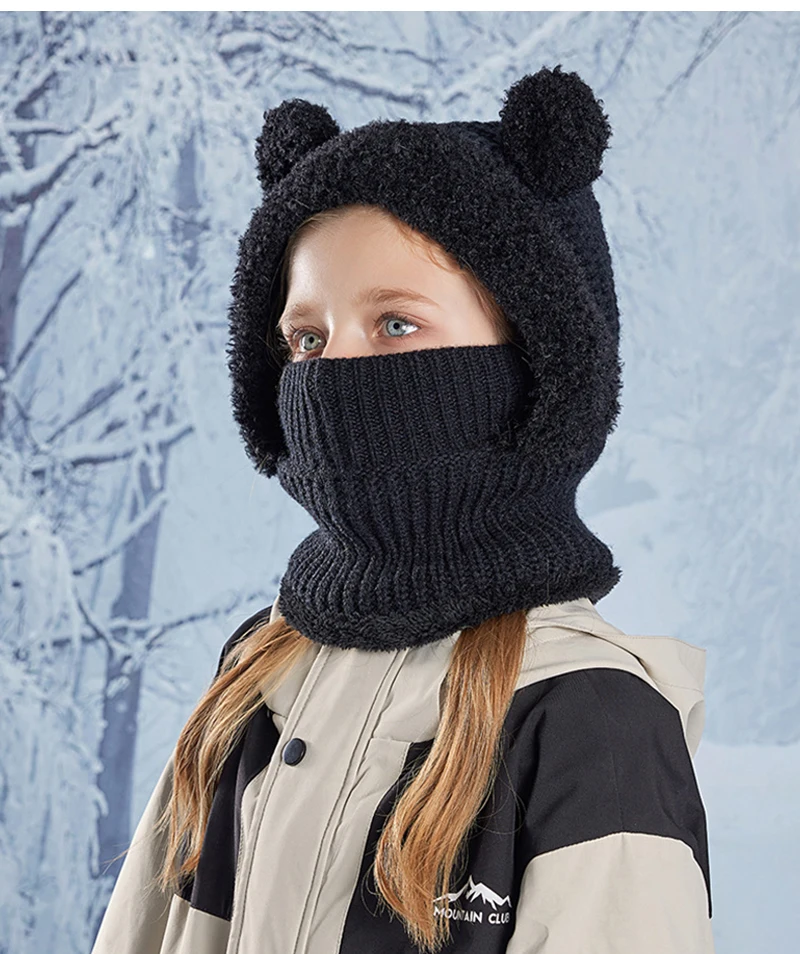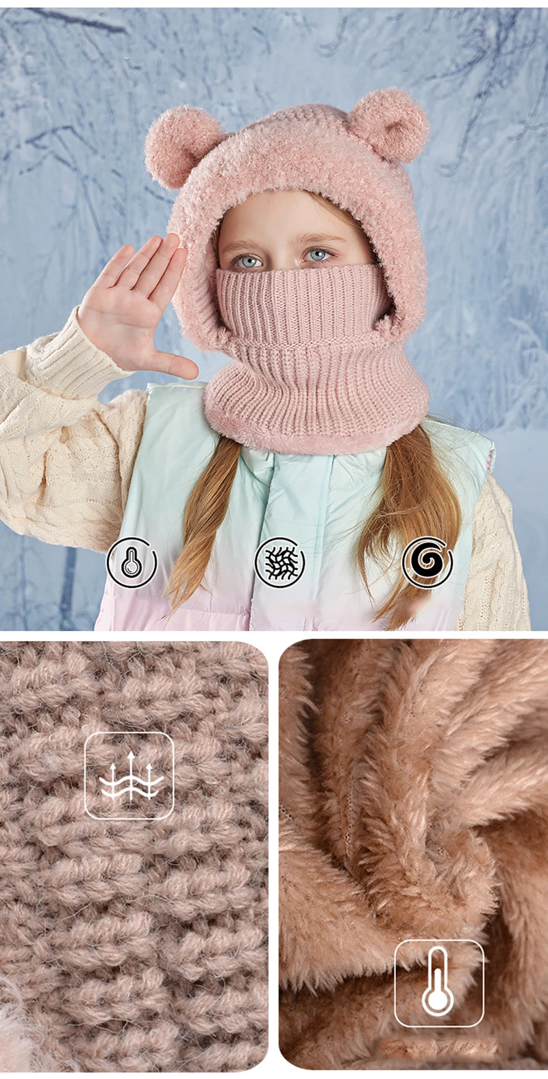 3.El diseño de una sola pieza de la máscara y el gorro bufanda protege las mejillas y las orejas de niños y niñas en climas fríos.