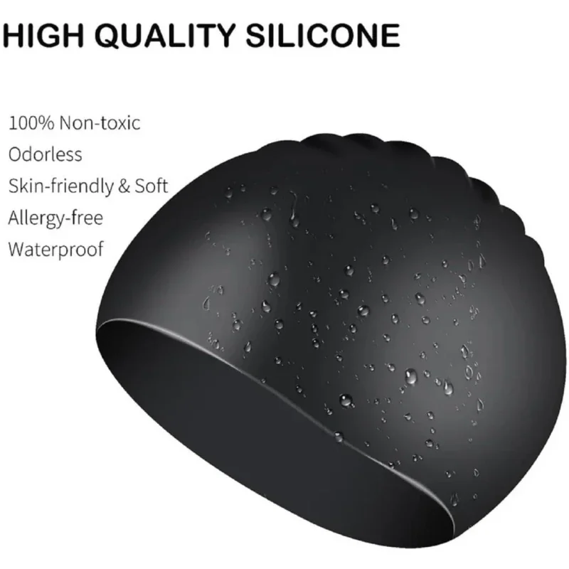 Material elástico:el gorro de piscina antideslizante está hecho de material de silicona, que tiene buena elasticidad y no se deforma después de estirarse, se adapta a la mayoría de tamaños de cabezas.