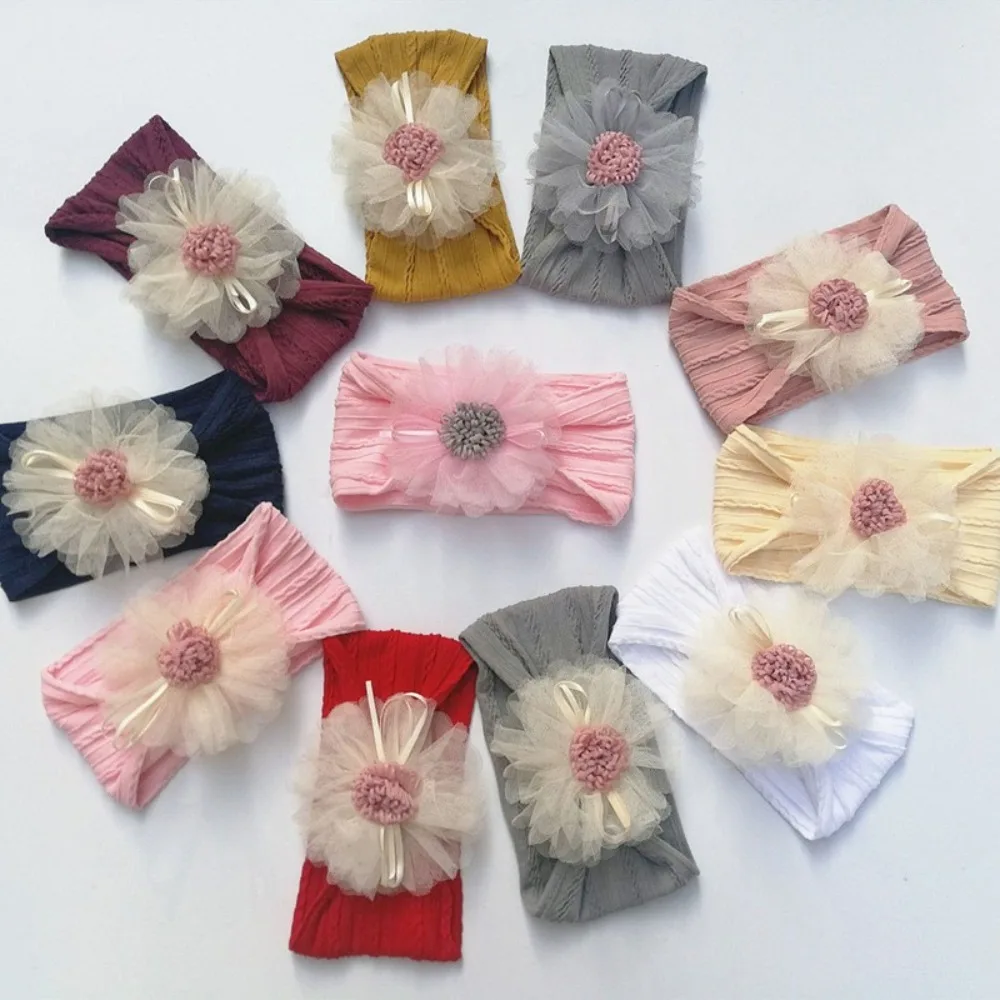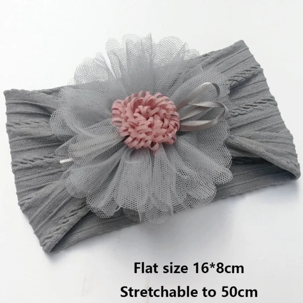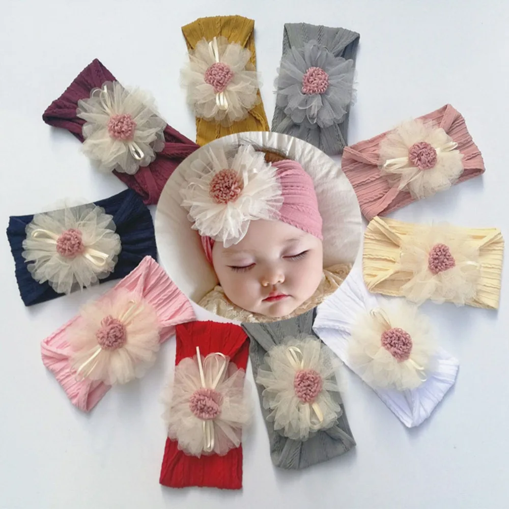 Comprar Gorros para niña, diadema de flores de malla, diadema elástica de Jacquard suave y elástica para bebé, diadema ancha de algodón, accesorio de fotografía