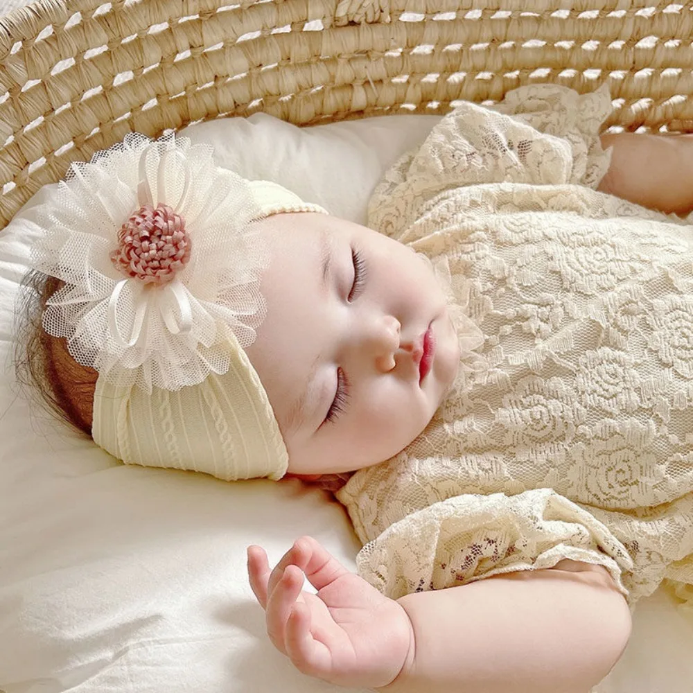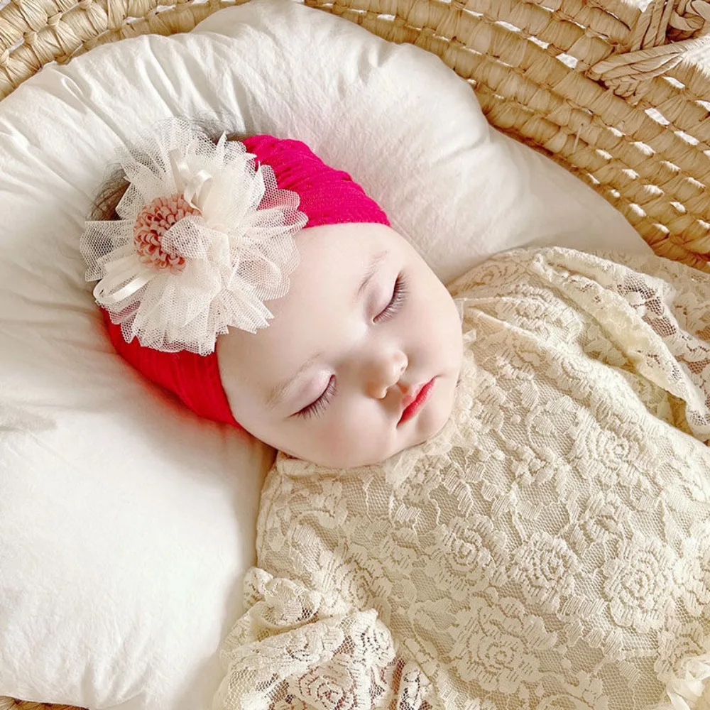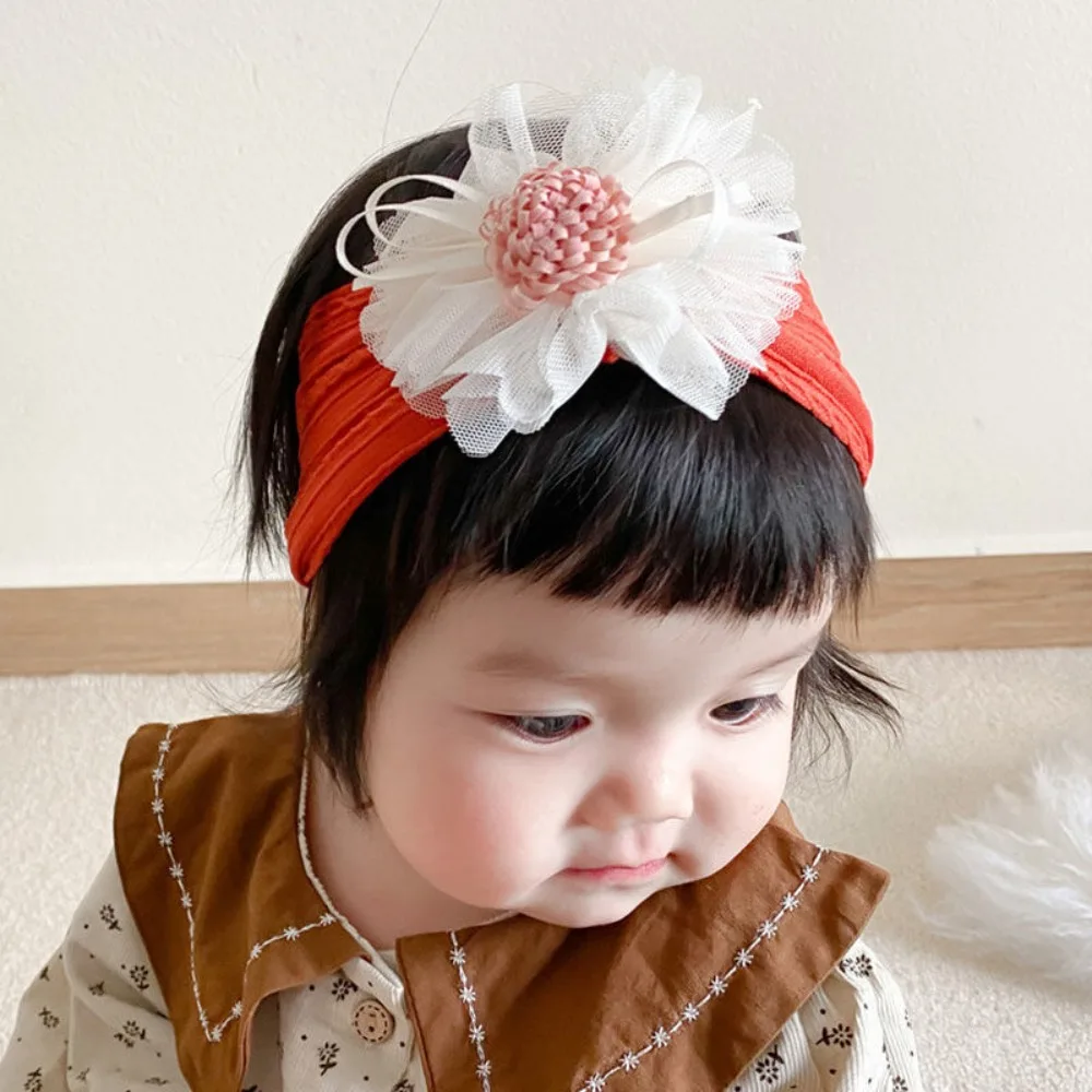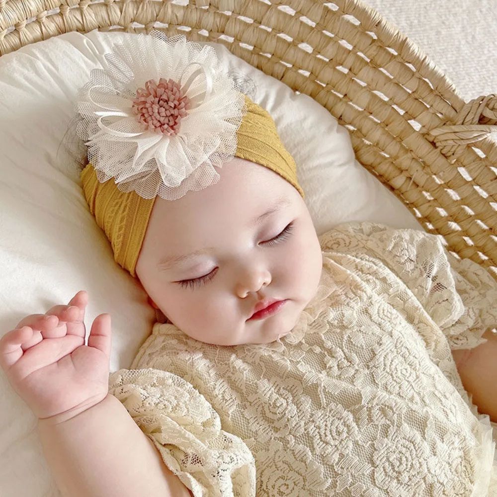 Comprar Gorros para niña, diadema de flores de malla, diadema elástica de Jacquard suave y elástica para bebé, diadema ancha de algodón, accesorio de fotografía