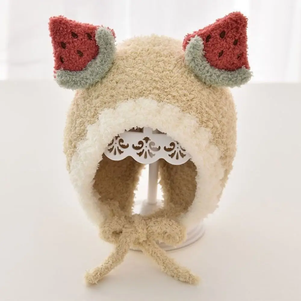 Brand New and High Quality Type: Hat Material: Plush Color: Yellow,Khaki,Beige,White,Pink Size: 20*16cm(7.87*6.30in) Hat Circumference: About 55cm(21.65in) Suitable for: 1-2 Year Old Babies Package Include: 1*Autumn Winter Warm Hat Tips: 1.Due to the light and monitors effect, colors may have lightly difference. 2.Please allow slightly size errors due to manual measurement. Thank you for your understanding!