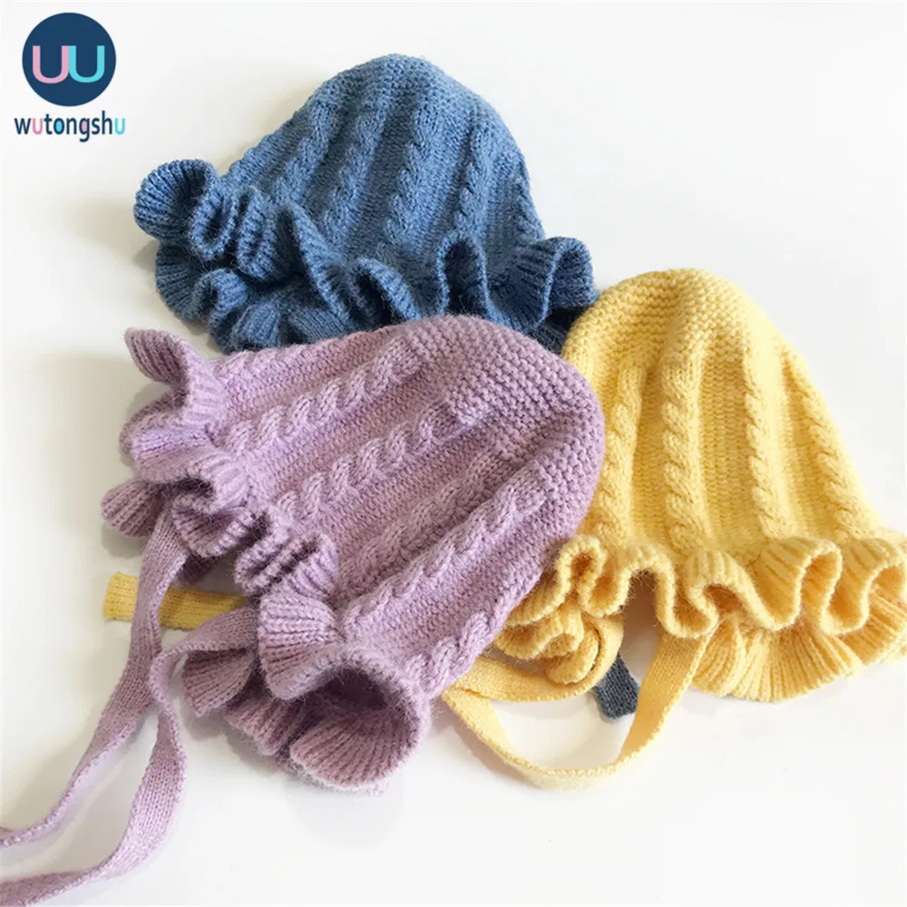 Comprar Gorros de punto para bebé y niña, gorro suave y cálido con bola de pelo, de princesa, para invierno