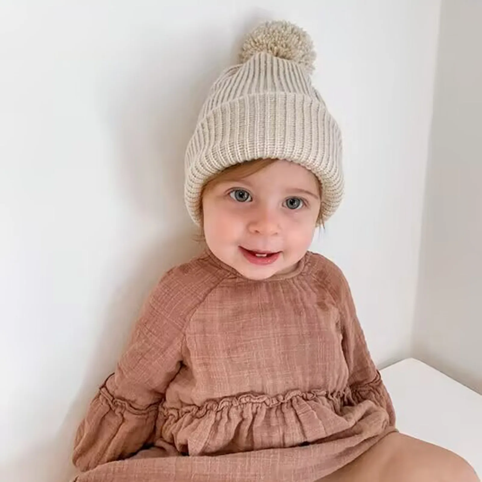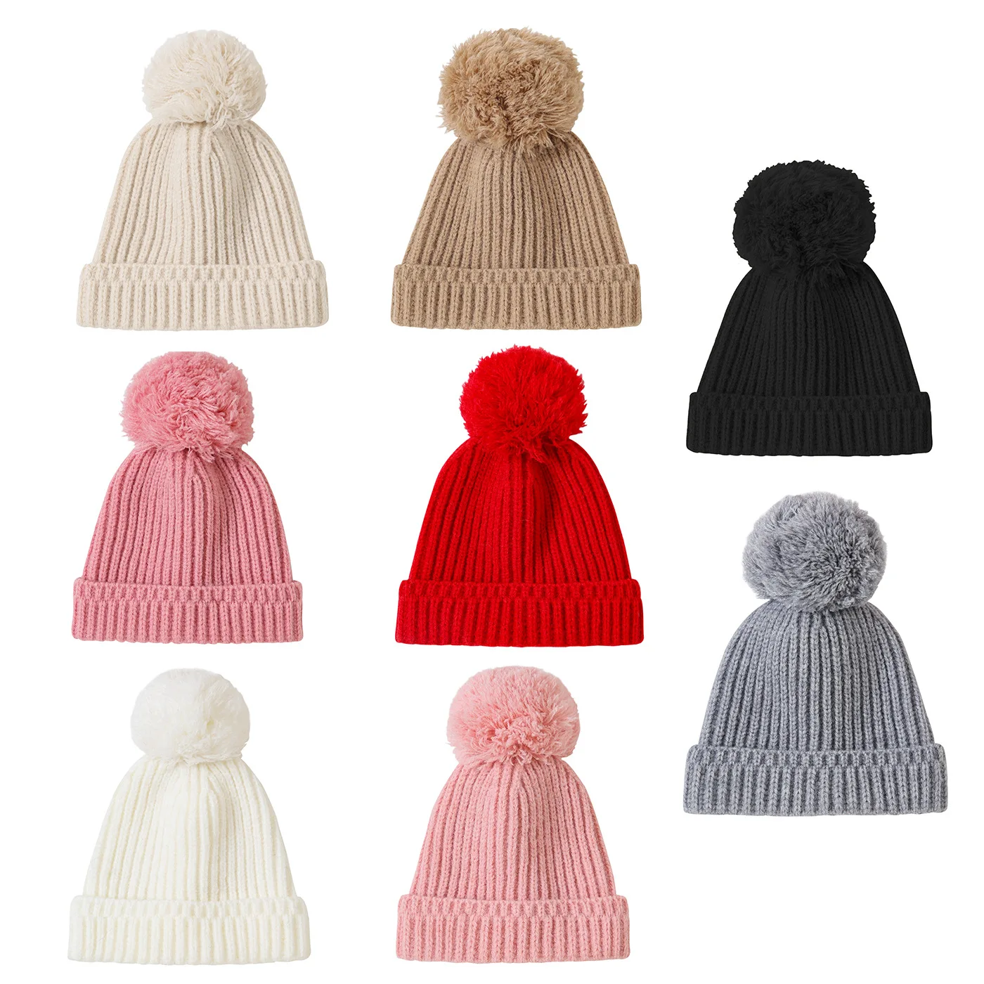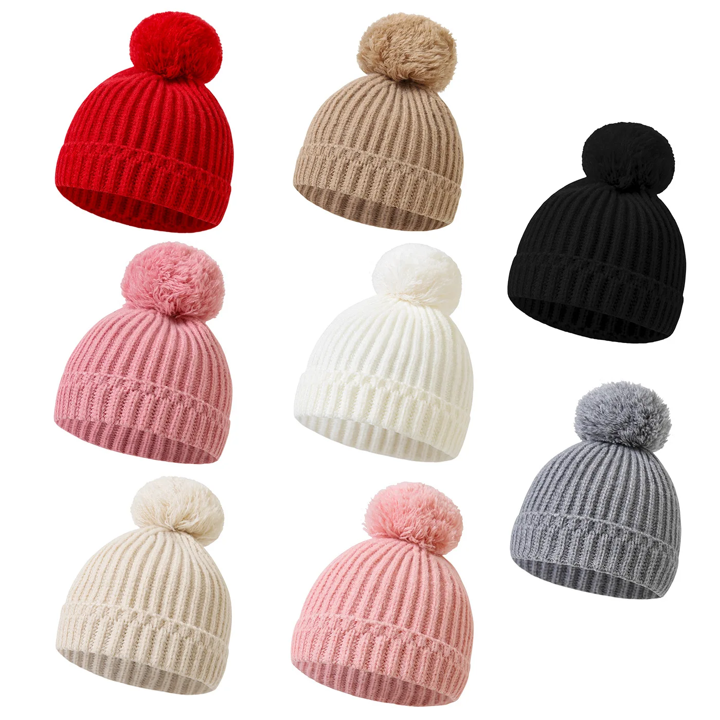 Gorros de punto cálidos para bebé recién nacido, gorros de punto suaves y esponjosos Unisex para niña y niño, gorros con bolas peludas, gorros cálidos y bonitos para bebé