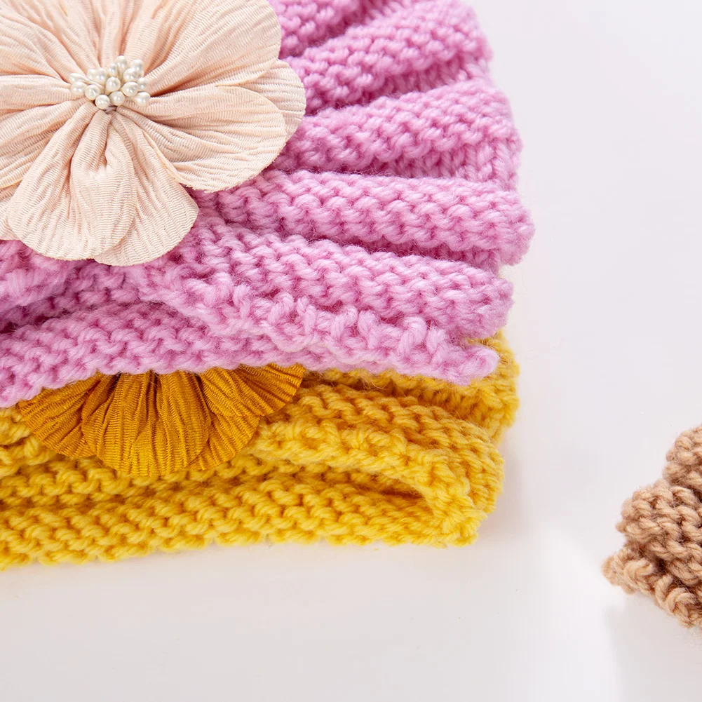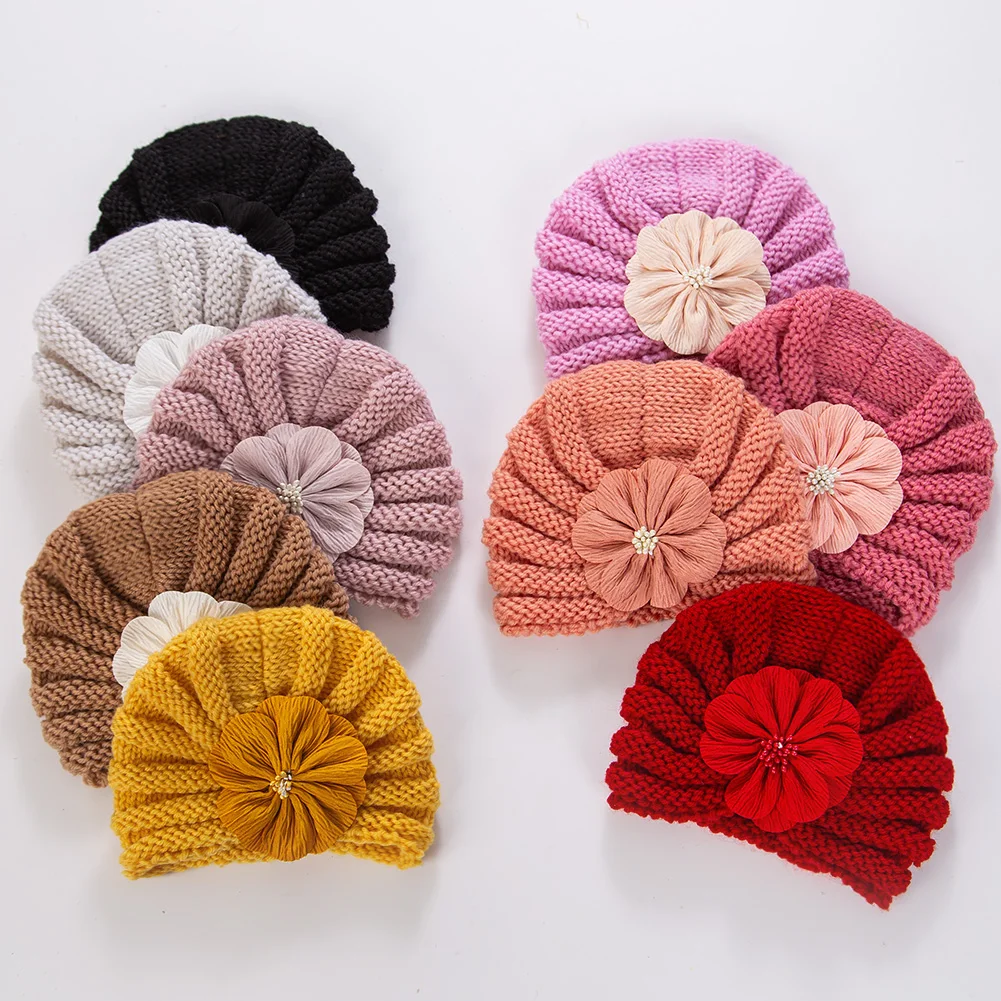 Gorros de punto con flores grandes de la India, gorros de ganchillo para recién nacidos, gorros de invierno para niños de 0 a 3T, diademas para niños y niñas, accesorios de fotografía